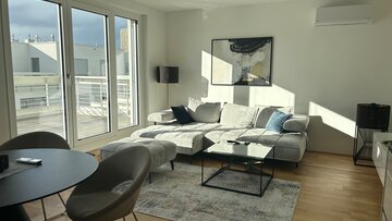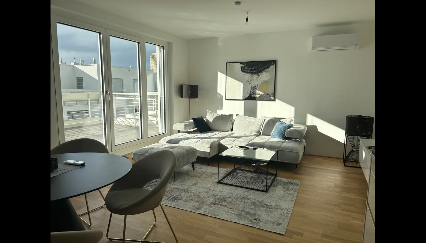 2 Zimmer Neubau Wohnung mit riesiger Dachterrasse. U-Bahn 7 Minuten zur U3 Gasometer. Sehr ruhig und trotzdem sehr zentral gelegen. Alles was man braucht ist in der Nähe. Tiefgaragen Stellplatz ist kostenlos dabei.