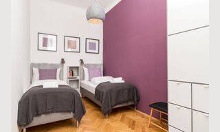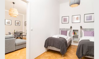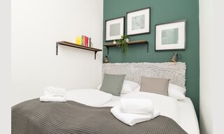Mit einer Größe von 62 Quadratmetern, einem großen Doppelbett und zwei Singlebetten in zwei separaten Schlafzimmern, bietet dieses Apartment genug Platz für 4 Personen.