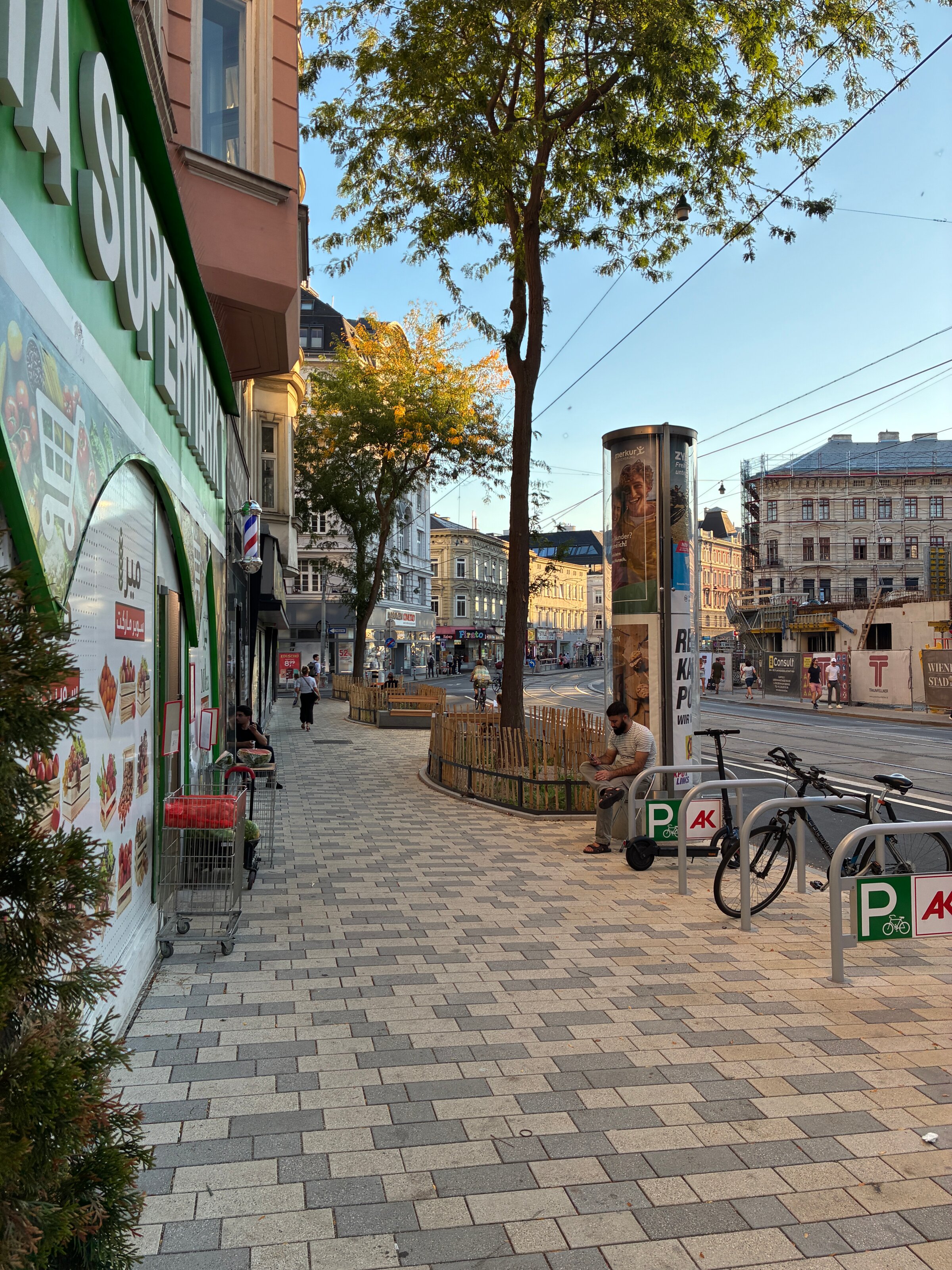 * In ca. 150m befinden sich Spar und Billa sowie günstige türkische Supermärkte, die sehr angenehme Öffnungszeiten haben. Nicht zu vergessen eine Bäckerei, die sonntags offen hat.