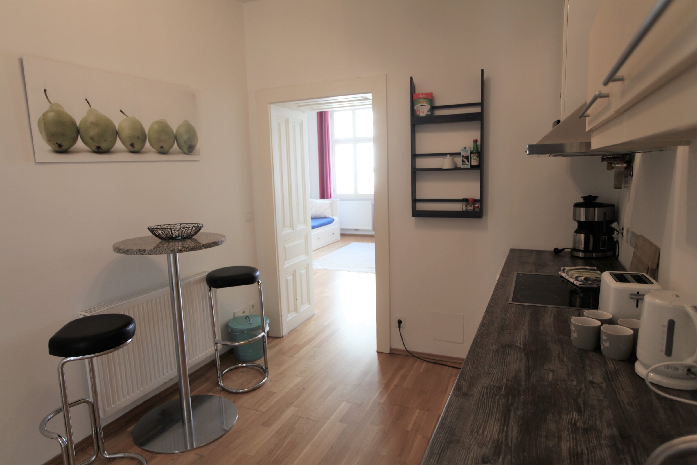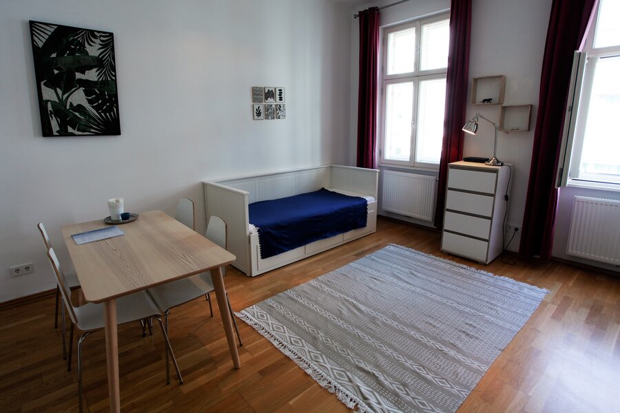 Helle und ruhige 2-Zimmer Wohnung in einem historischen Wohnhaus (1890) direkt am Augarten. Die Wohnung befindet sich im 20. Bezirk (Brigittenau) und ist nahe am Zentrum gelegen. Das Appartement ist ca. 50 m² groß und für 2-4 Personen geeignet.