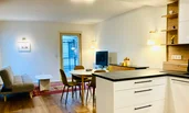 Die geschmackvolle frisch renovierte Wohnung mit einer großer Terrasse von 55qm ladet zum entspannen ein. Die Möbel sind passend zu der Wohnung und der vom Tischler gebauten Küche ausgewählt, diese ist mit Bosch Geräte ausgestattet. Zusätzlich zu So