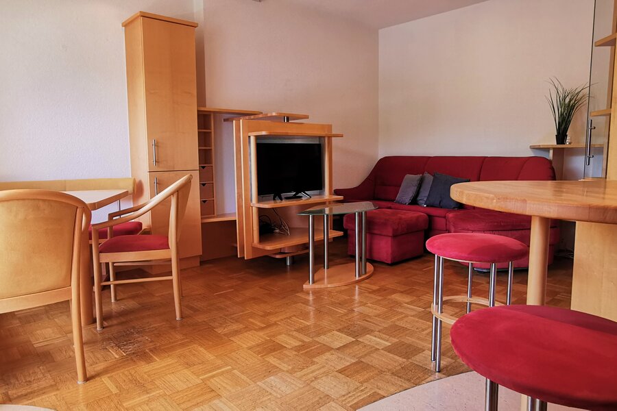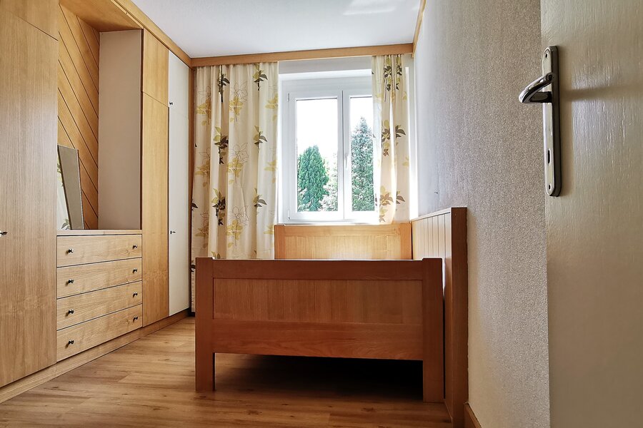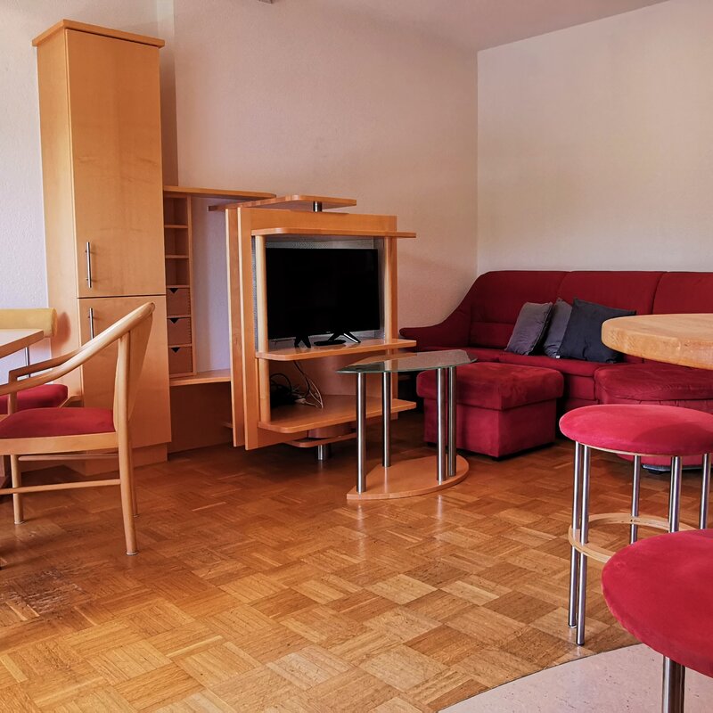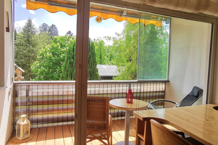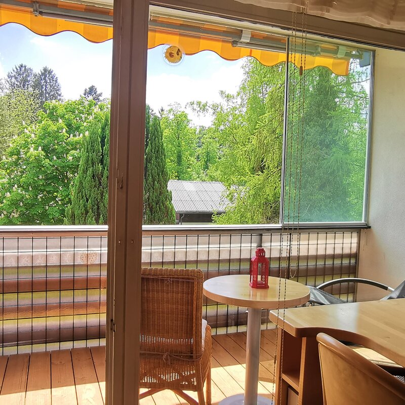 Die im 2. Stock gelegene Unterkunft ist einfach mit dem Lift erreichbar, komplett möbliert und bietet einen herrlichen Blick ins Grüne.