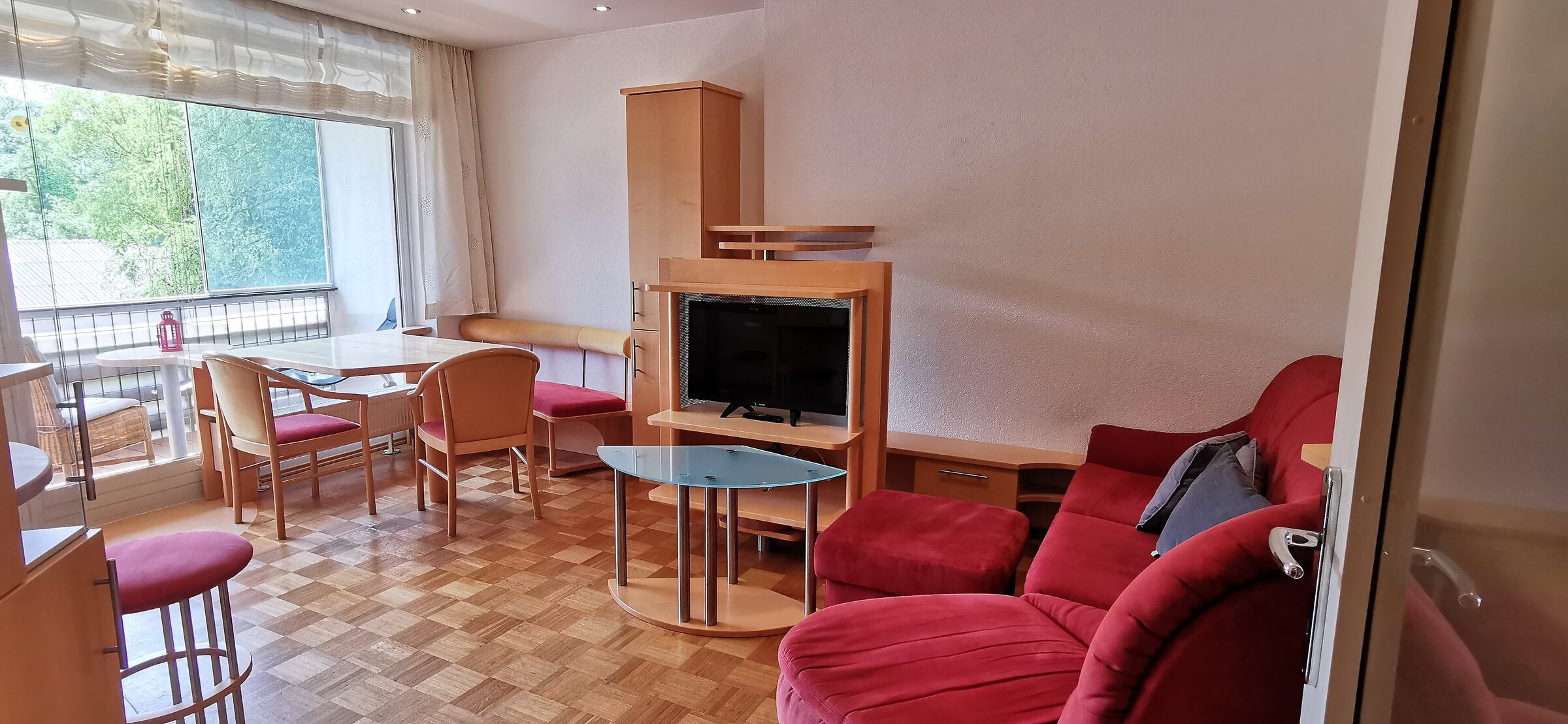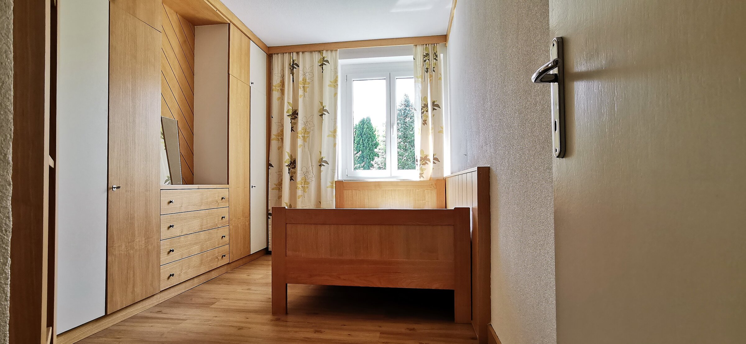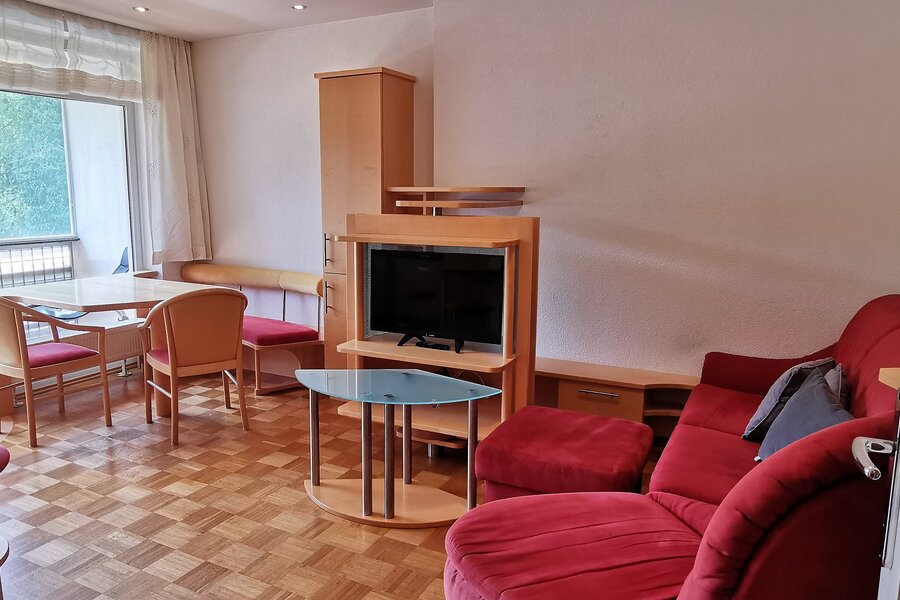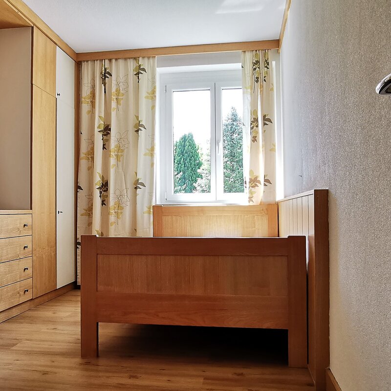 Die im 2. Stock gelegene Unterkunft ist einfach mit dem Lift erreichbar, komplett möbliert und bietet einen herrlichen Blick ins Grüne.