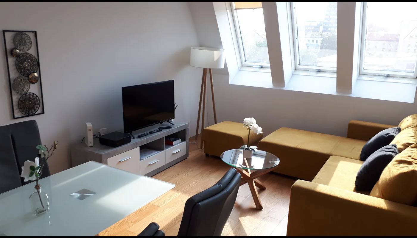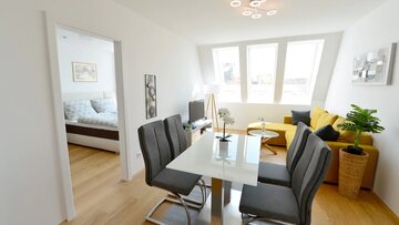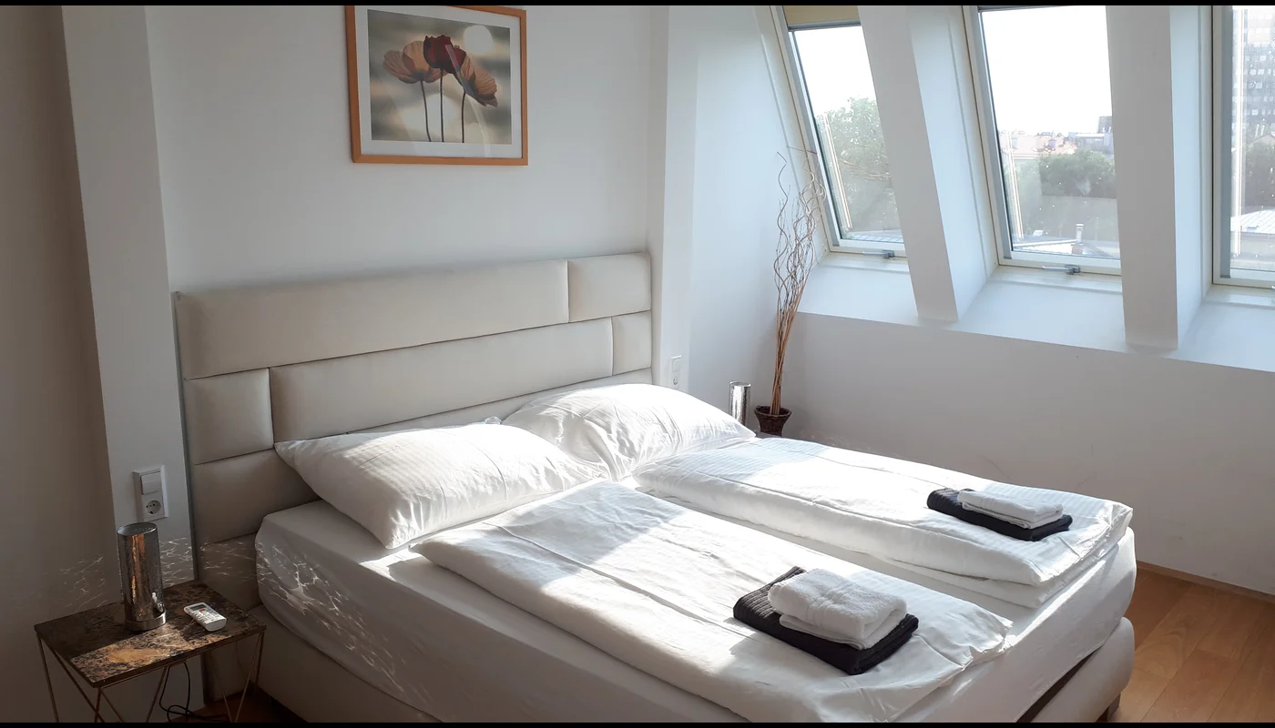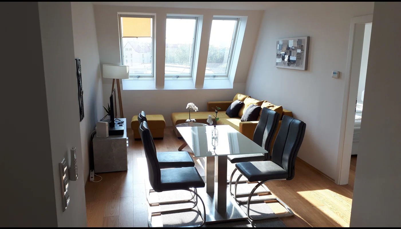Tolle moderne, helle und geschmackvoll eingerichtete Wohnung im neuen Dachgeschoß eines Gründerzeithauses mit Klimaanlage in jedem Raum. Die U-Bahn Stationen U4 und U6 sind ganz in der Nähe, ebenso Schloss und Schlosspark Schönbrunn.