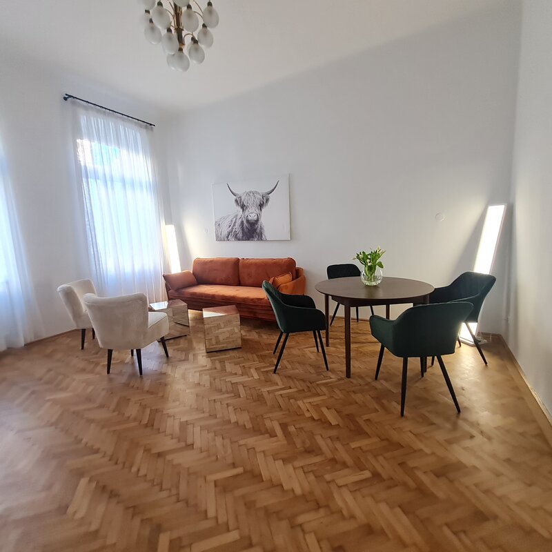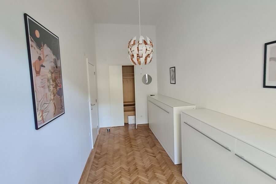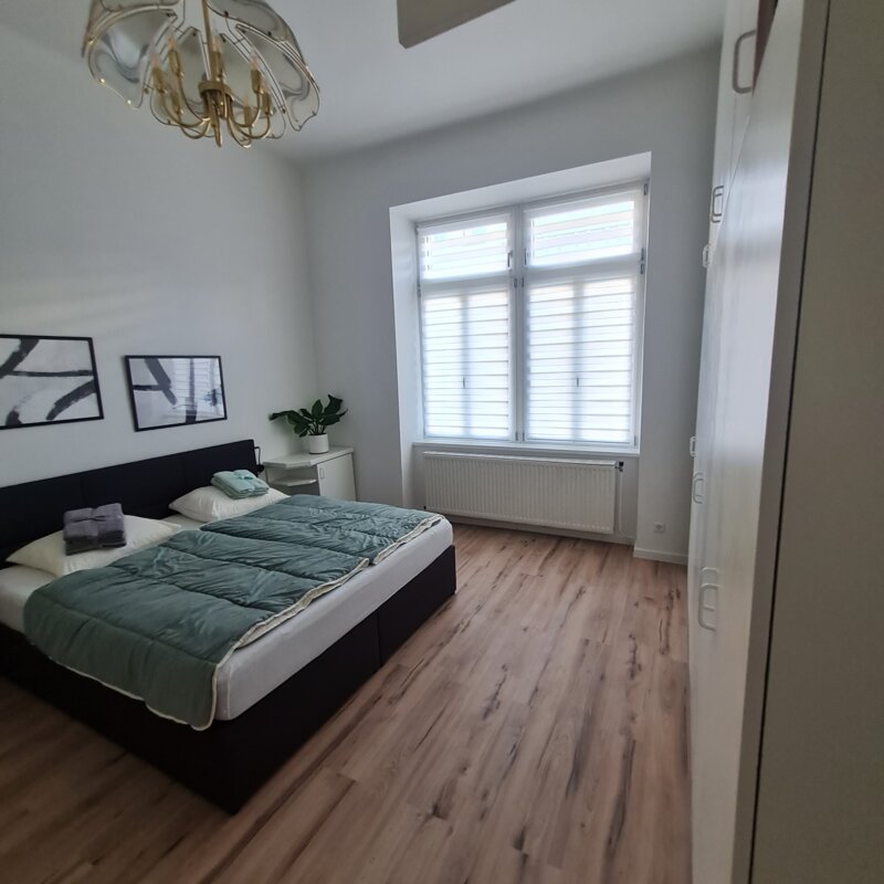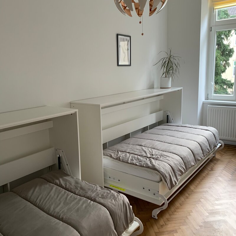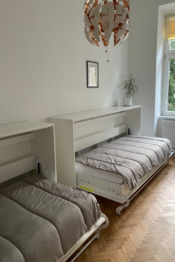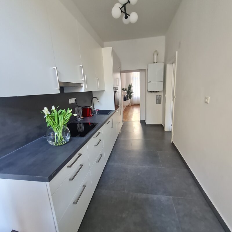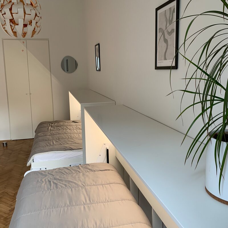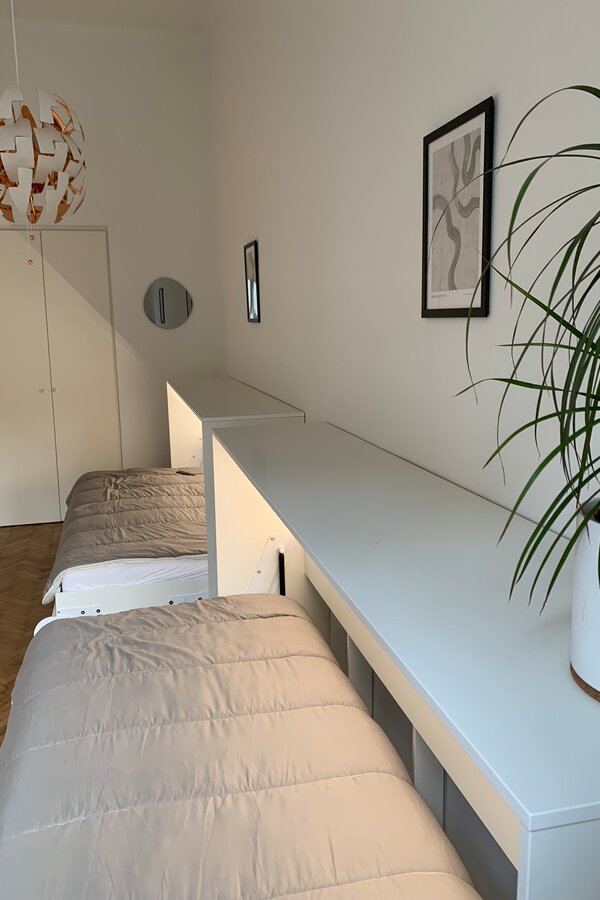 Sie mieten eine sehr schöne neu renovierte ca. 80m² große Altbauwohnung mit sehr schönen hohen Räumen 3,6m (Küche nur 2,8m) und 6 Schlafplätzen und eigenem BAD mit separatem WC.