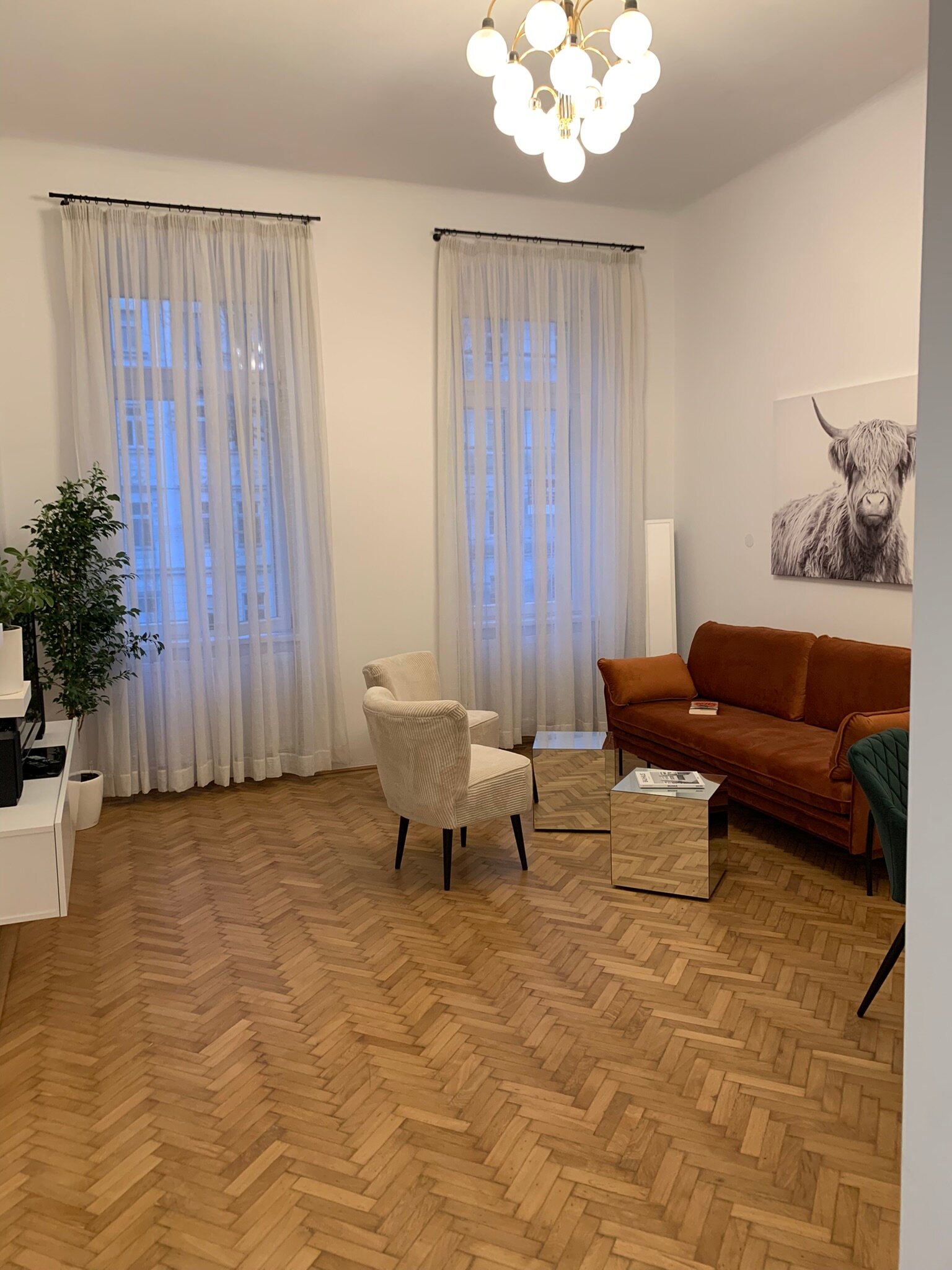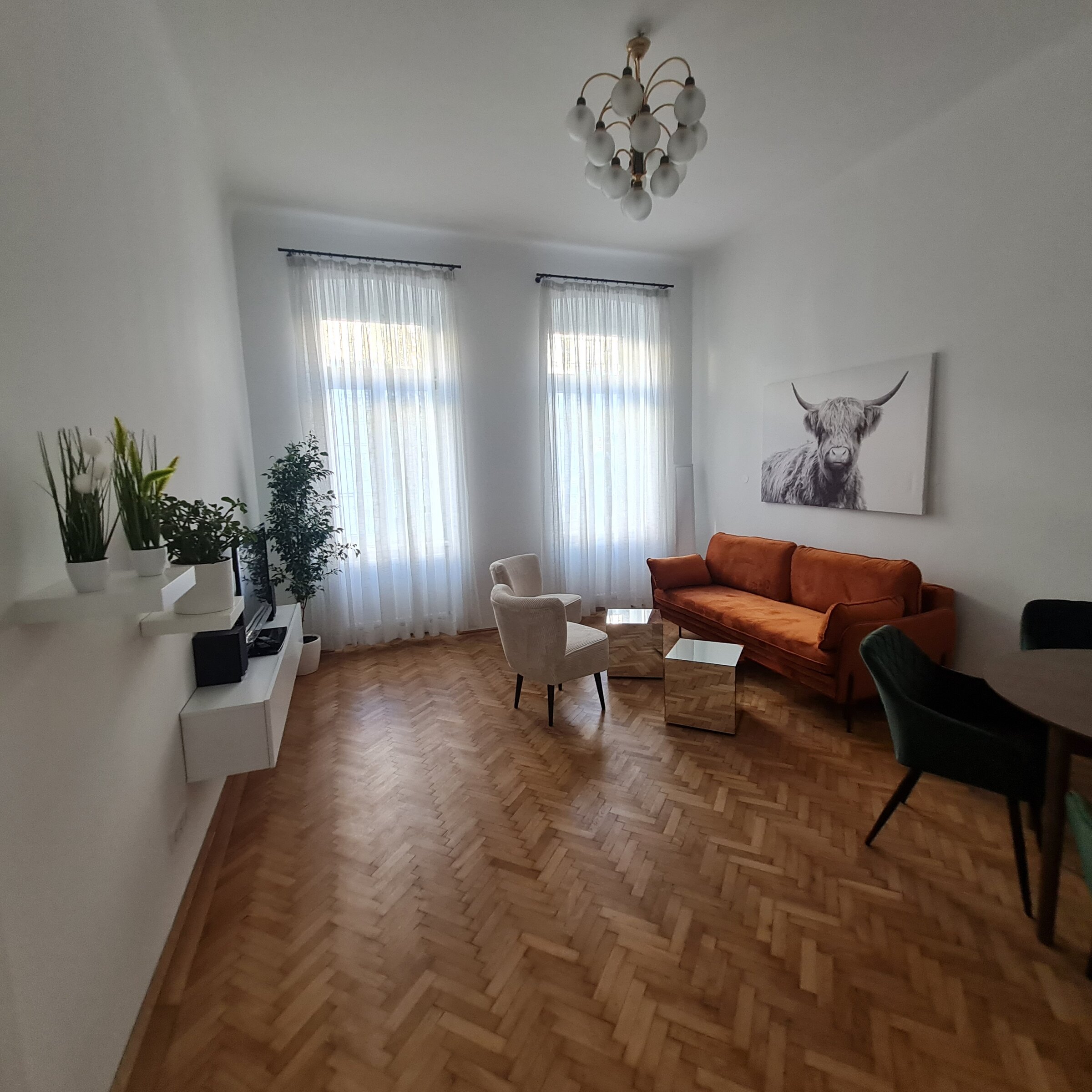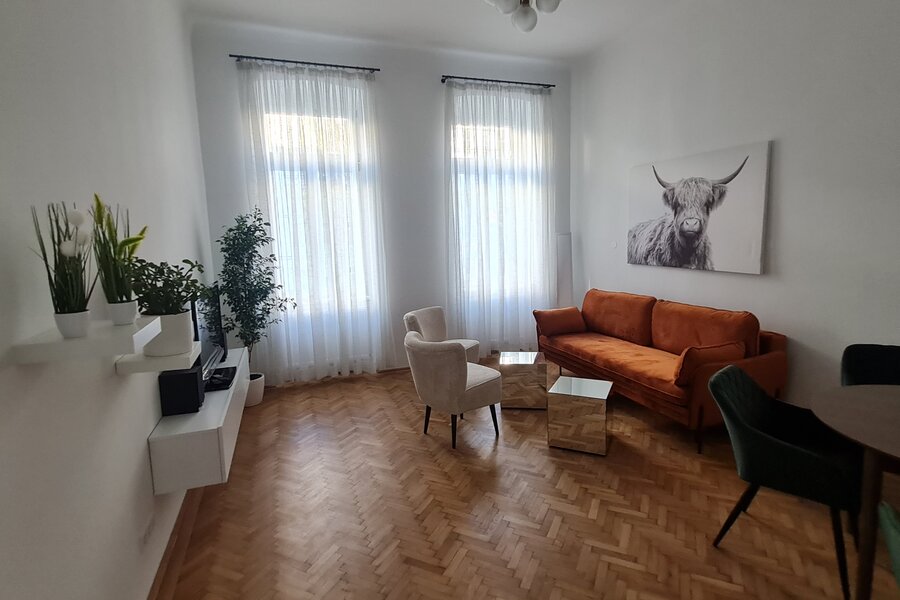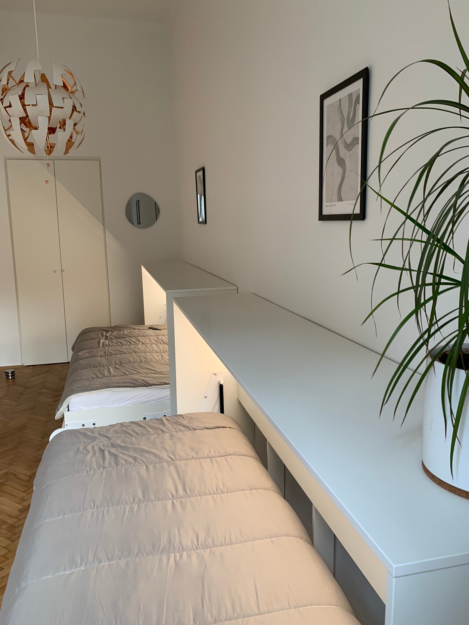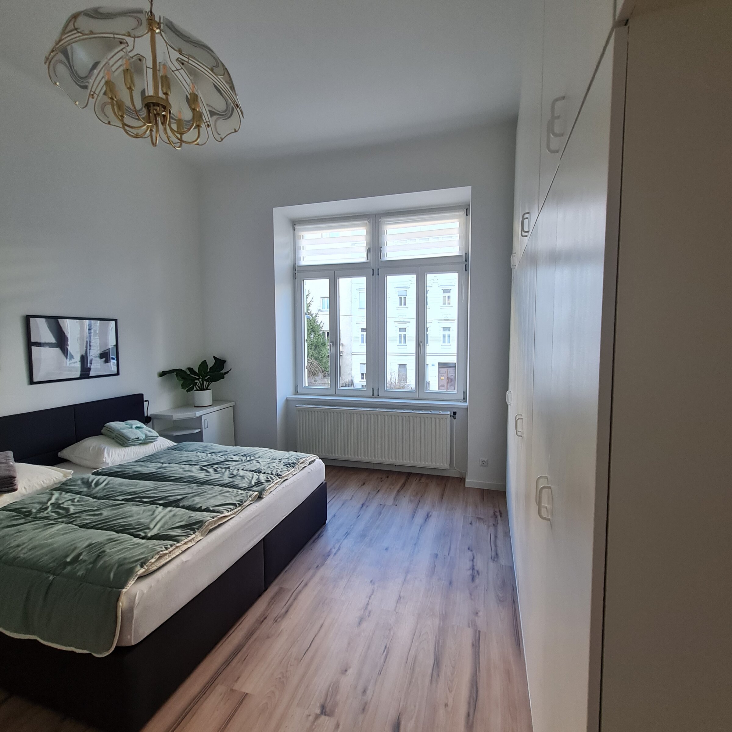 Sie mieten eine sehr schöne neu renovierte ca. 80m² große Altbauwohnung mit sehr schönen hohen Räumen 3,6m (Küche nur 2,8m) und 6 Schlafplätzen und eigenem BAD mit separatem WC.
