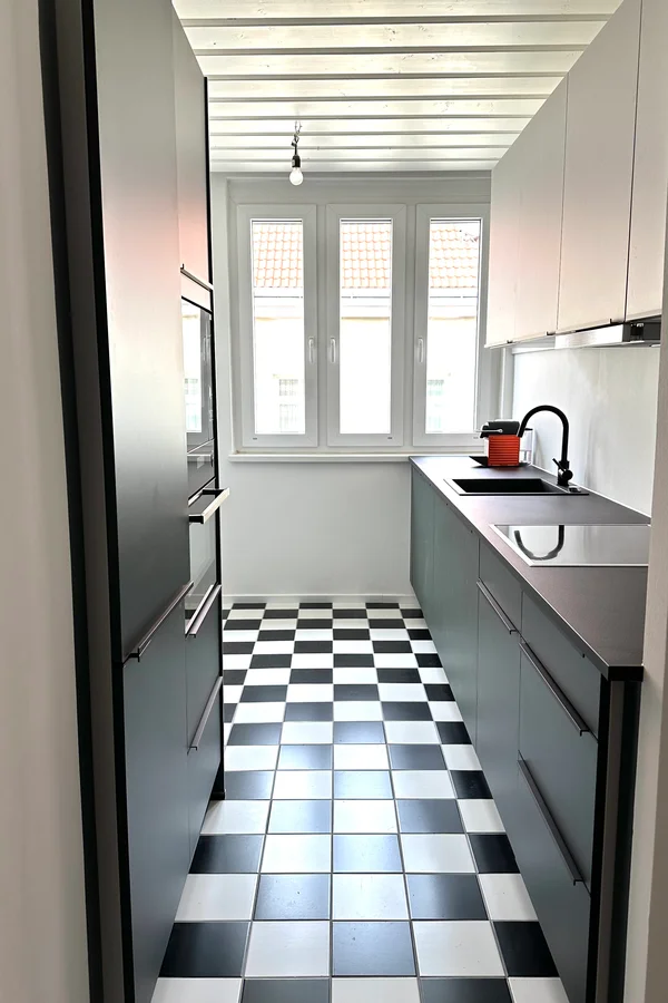 1 Schlafzimmern mit Gemeinschaft: Küche, Bad mit Wanne und WC.
