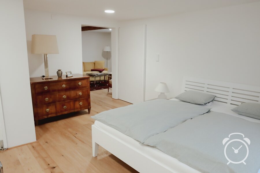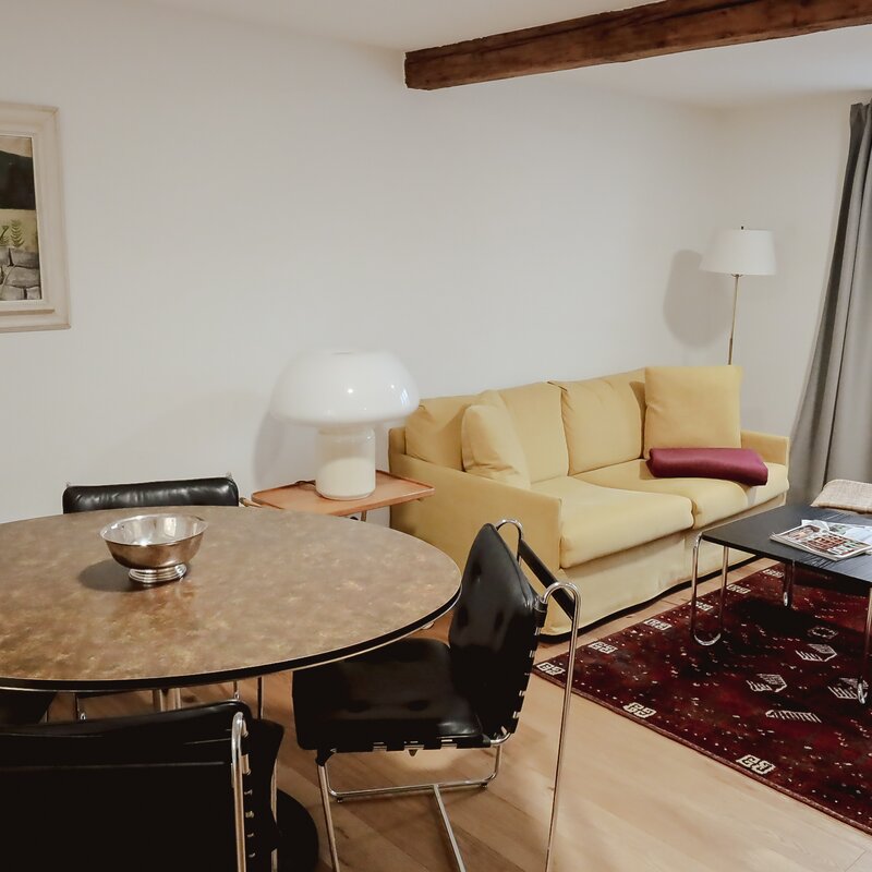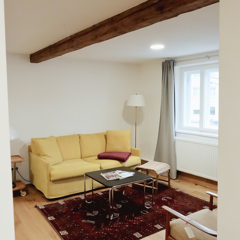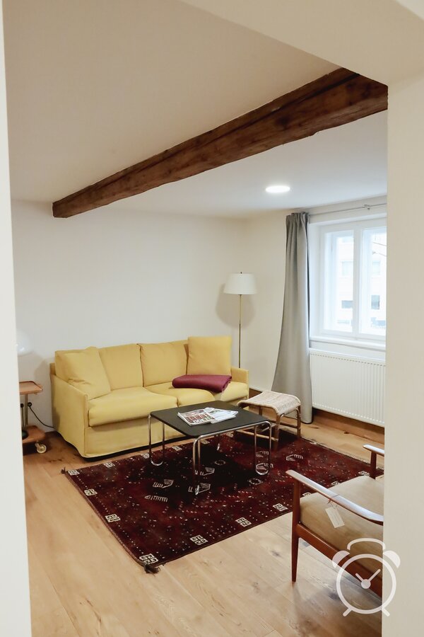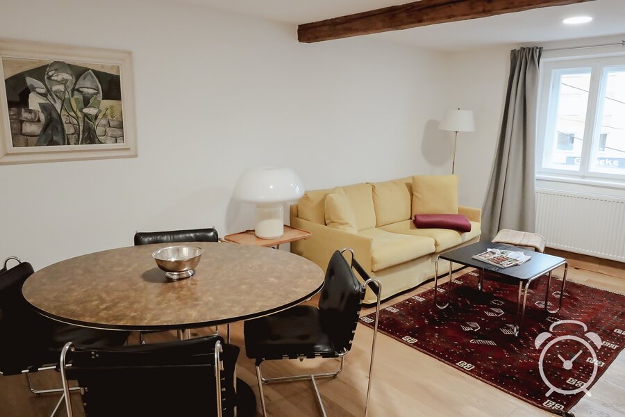 Das stilvolle 2-Zimmer-Apartment ist mit Designerstücken und antiken Möbeln ausgestattet.