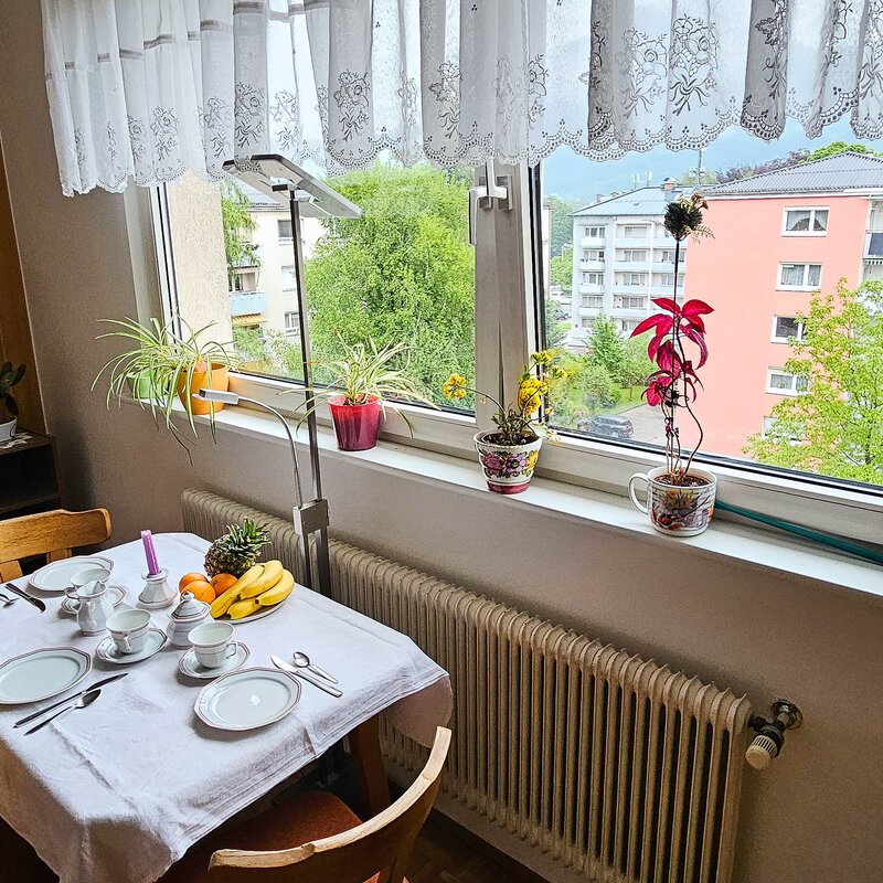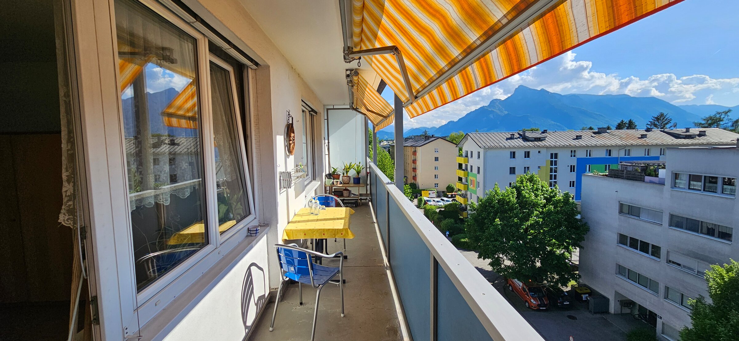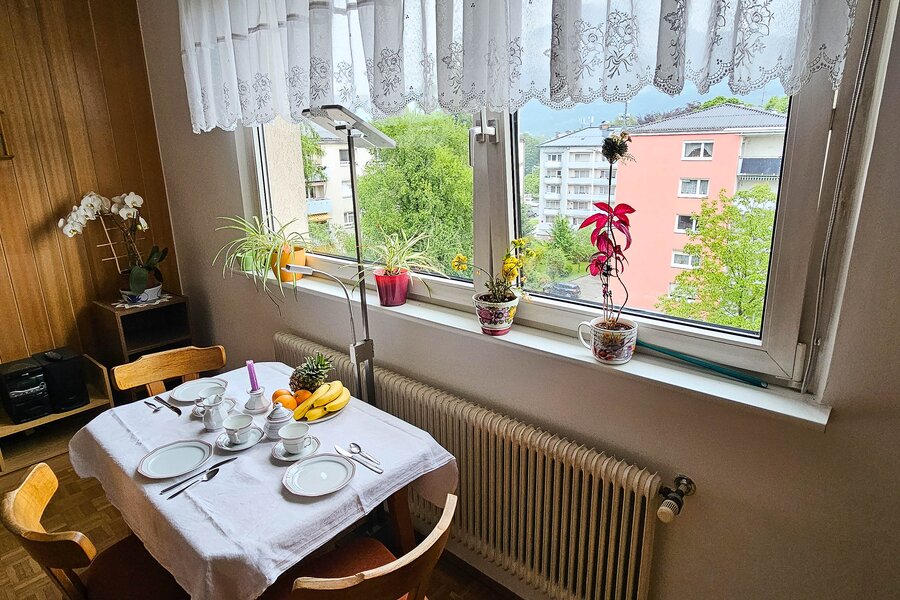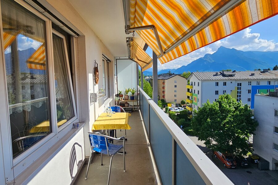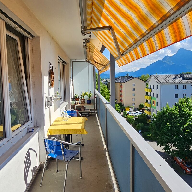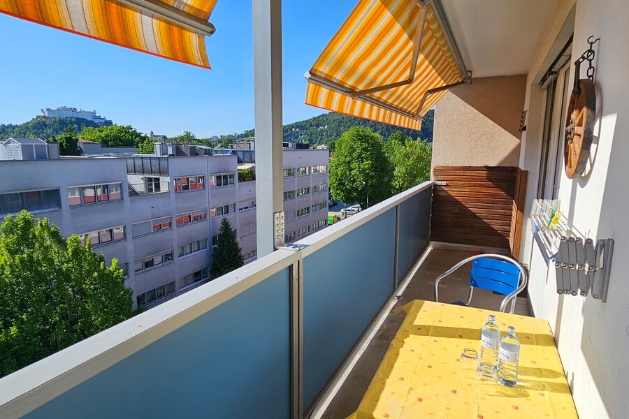 Wohnen mit Festungsblick von Wohn- und Schlafzimmer aus, Blick auf Gaisberg von Frühstückszimmer aus, Wohnen Nähe Uni Salzburg (Naturwissenschaft), Nähe Freisaal und Hellbrunner Allee (Landschaftsschutzgebiete), Obusaltestelle +5 min, zu Fuß +20 min