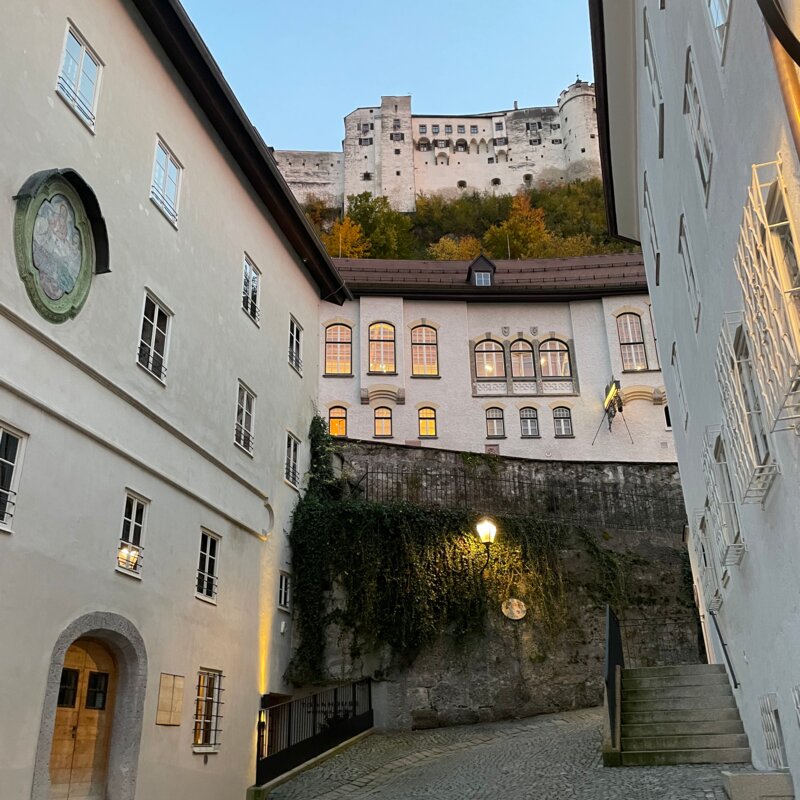 In einem denkmalgeschützten mittelalterlichen Haus am Fuße des Festungsberges befindet sich eine der ruhig gelegenen 2-Zimmer-Wohnungen im 2 Obergeschoß. Von hier aus hat man einen selten schönen unverbauten Blick auf die Salzburger Altstadt.
