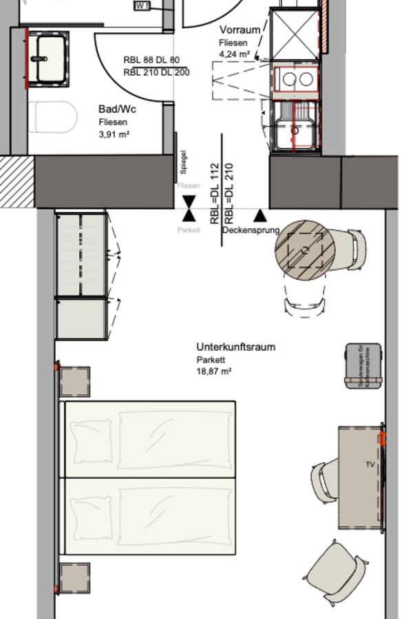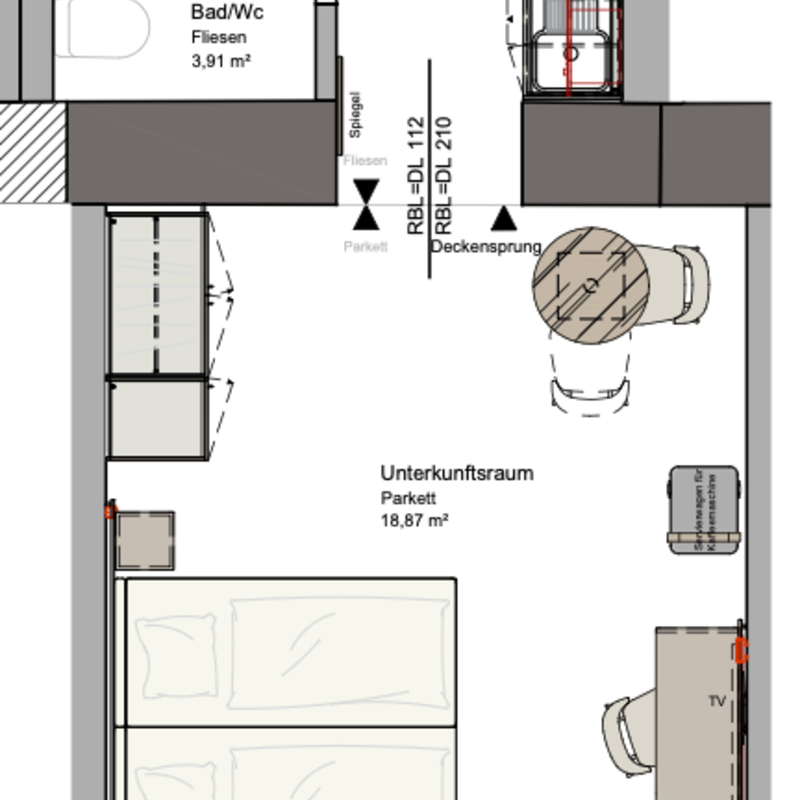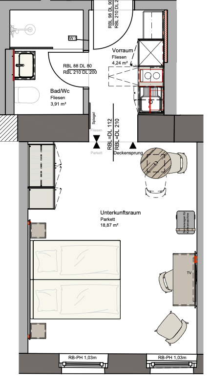 1 Privates Badezimmer, 1 Wohnen & Schlafen