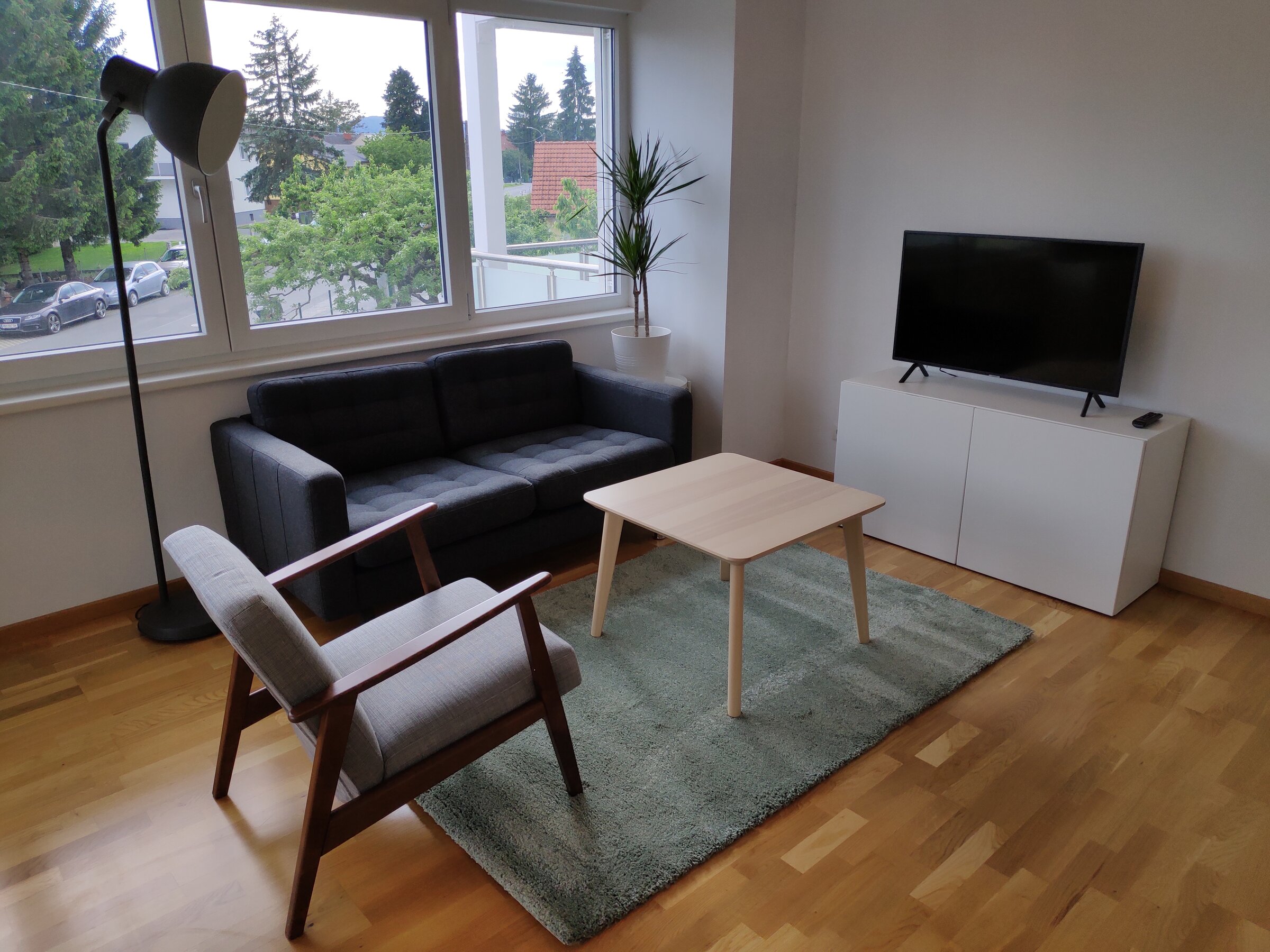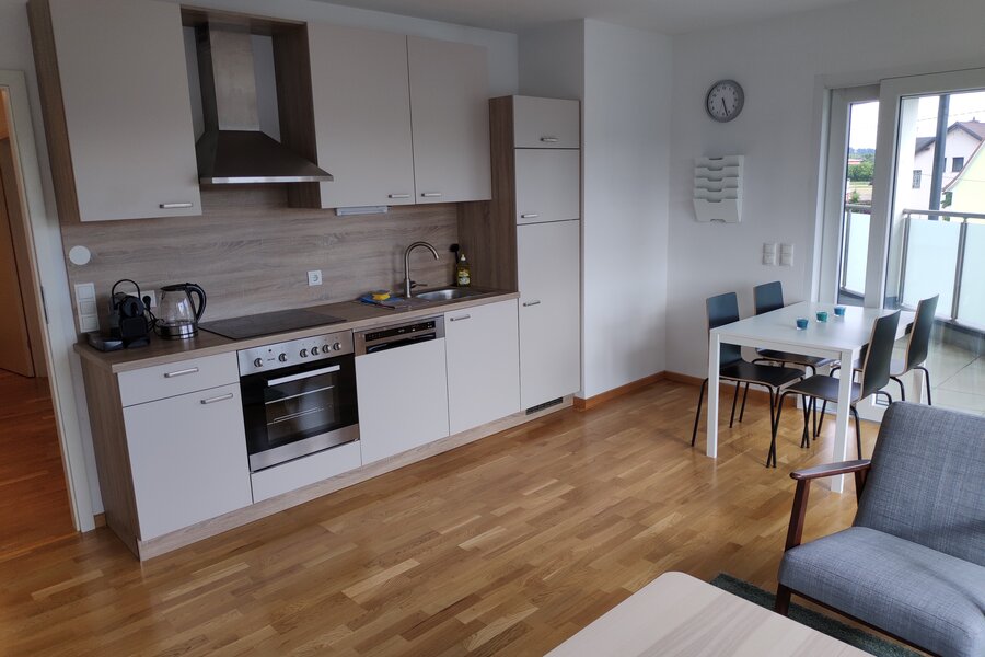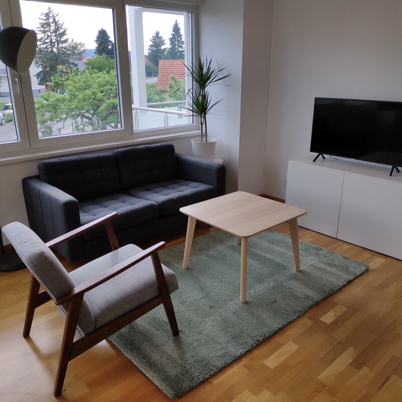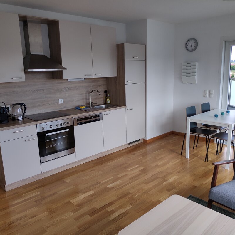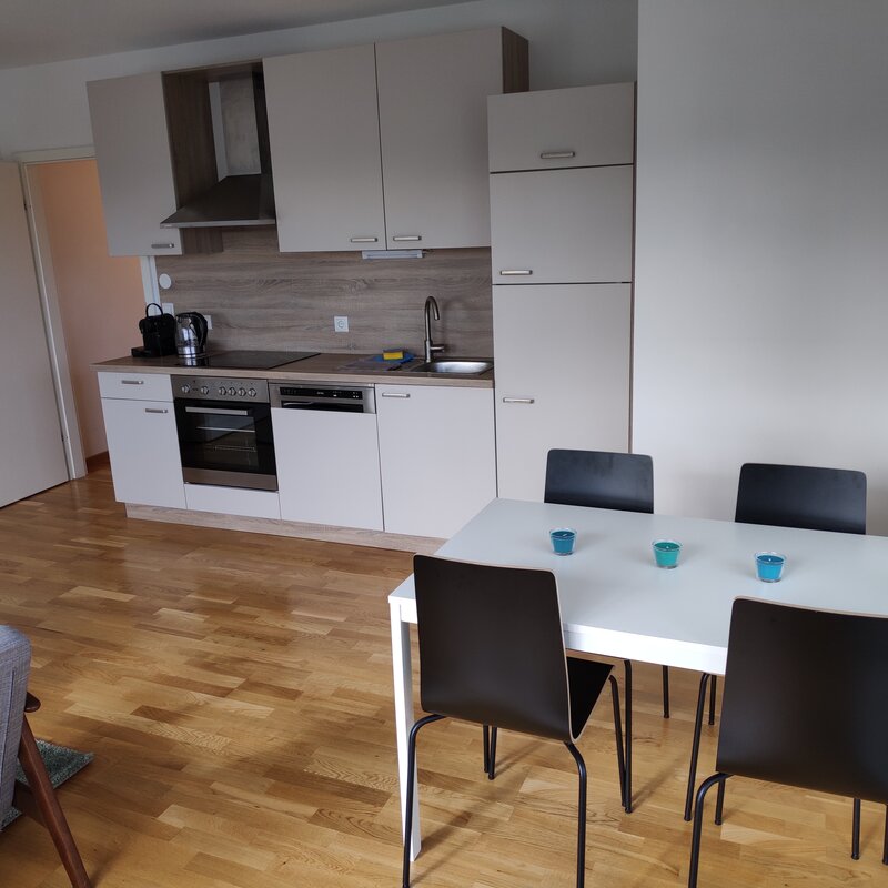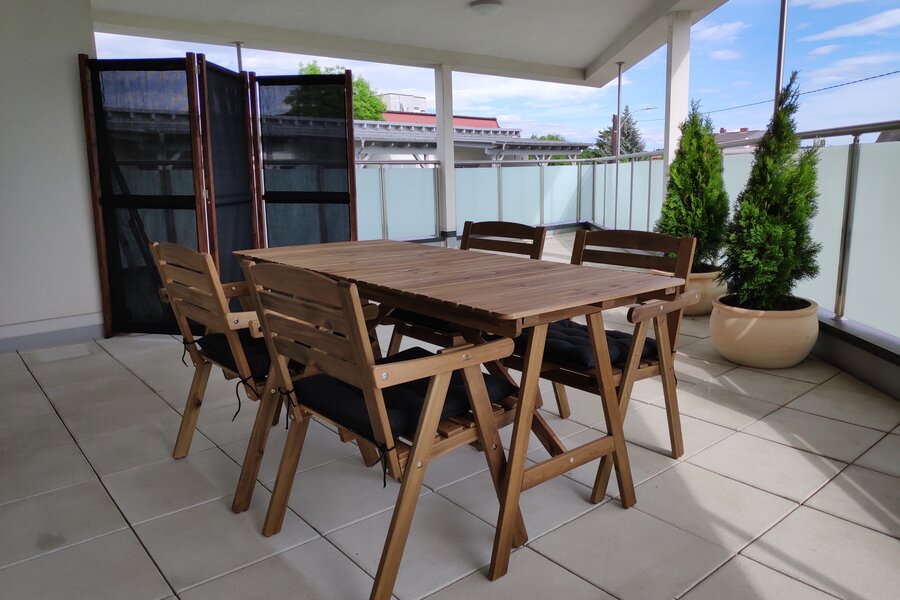 Die vollausgestattete Wohnung befindet sich ca 15 Autominuten von der Innenstadt entfernt (nähe Einkaufszentrum Murpark und MAGNA) und befindet sich im 1. Stock mit Lift. Super große Terrasse, 1x Schlafzimmer und 1x Wohn/Esszimmer. Bad+WC getrennt.