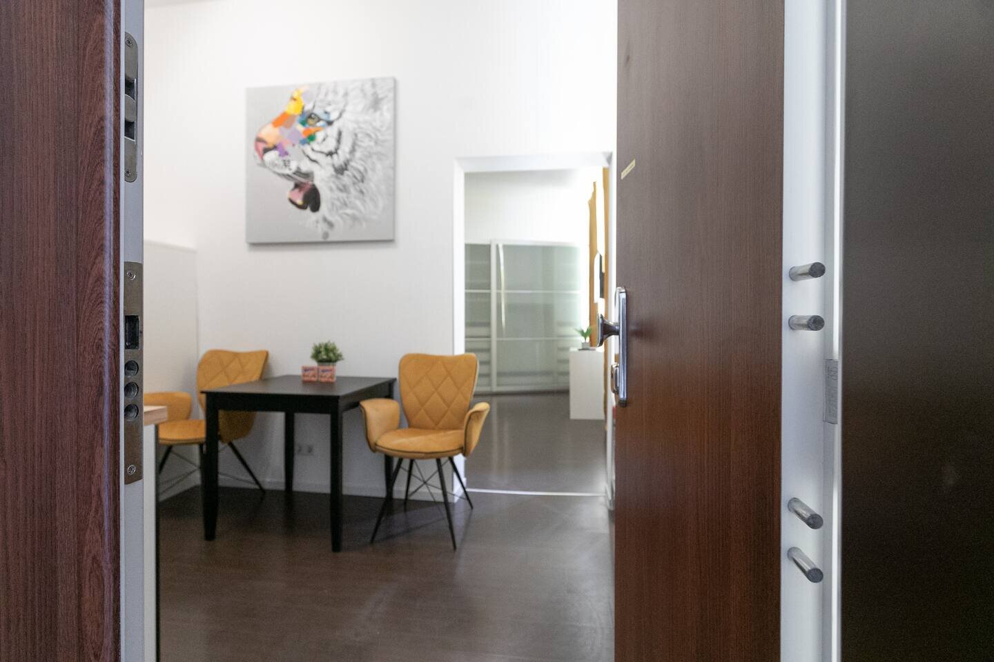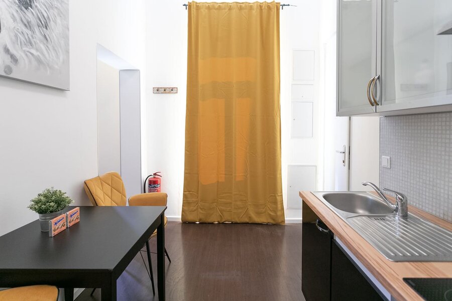 Das Appartment befindet sich in einem Mehrparteienhaus im 3. Stock ohne Lift mit Fenster in den Innenhof.
