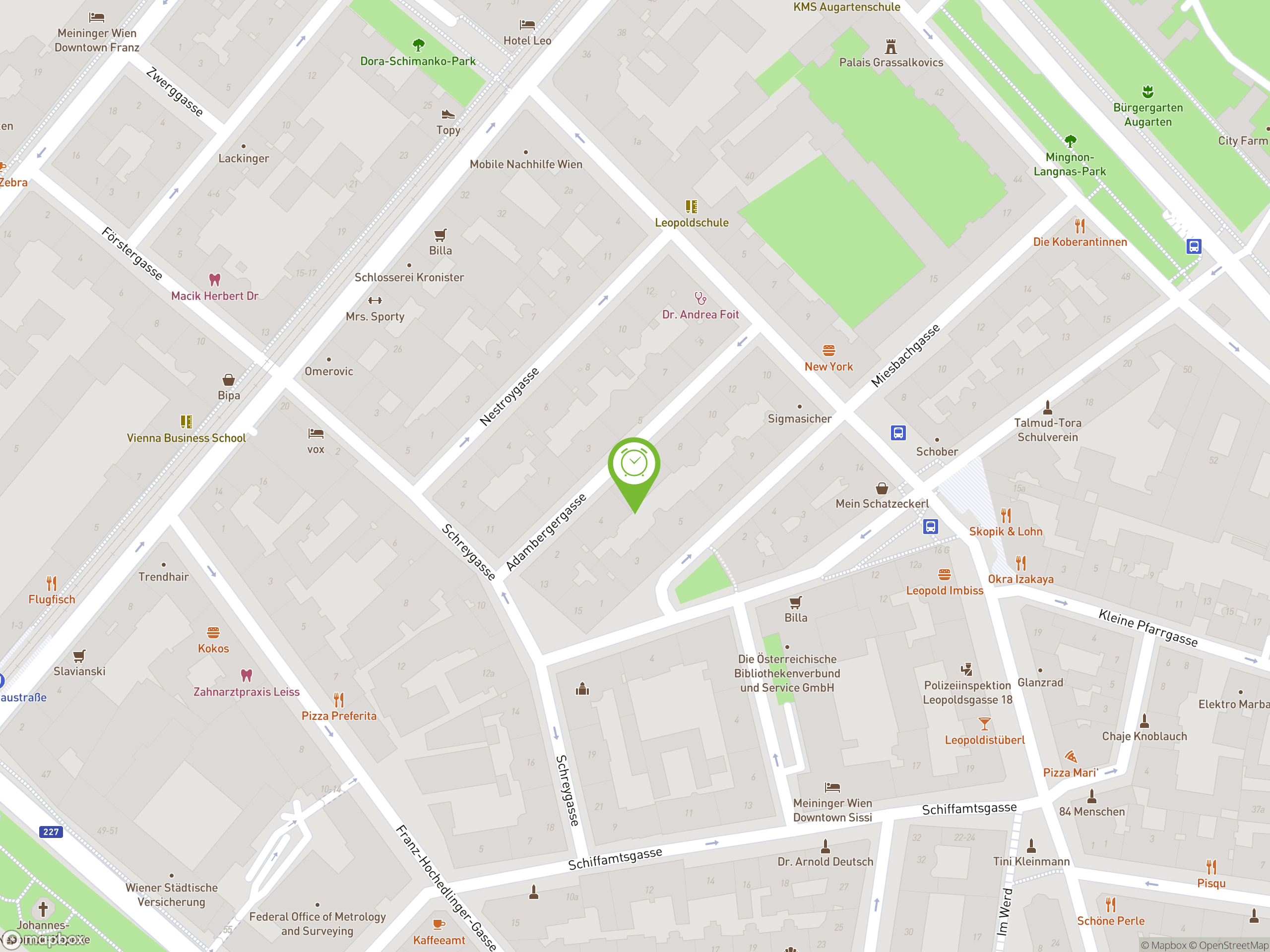 Supermärkte, Drogerien, Apotheke, U-Bahn (U2, U4 Schottenring), Bushaltestellen (5A, 5B), Straßenbahn (31, 1), Radwege, Augarten, Donaukanal, Karmelitermarkt - alles innerhalb 5-7 Minuten zu Fuß erreichbar.