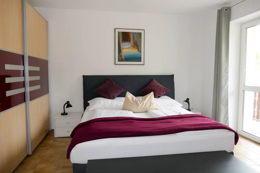 Schlafzimmer: 1 x Doppelbett (1,80 m x 2 m), 1 x Zustellbett