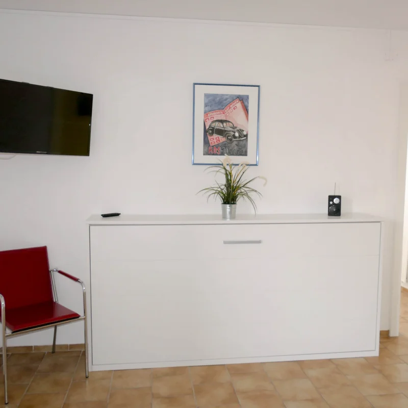 Wohnen und Schlafen 2: 1 x Doppelbett (1,80 m x 2 m), 1 x Zustellbett