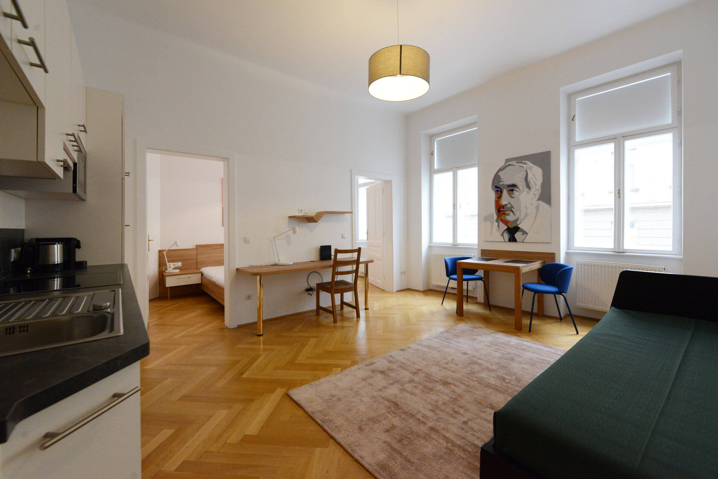 1 Privates Badezimmer, 1 getrenntes Schlafzimmer, 1 Wohnen & Schlafen