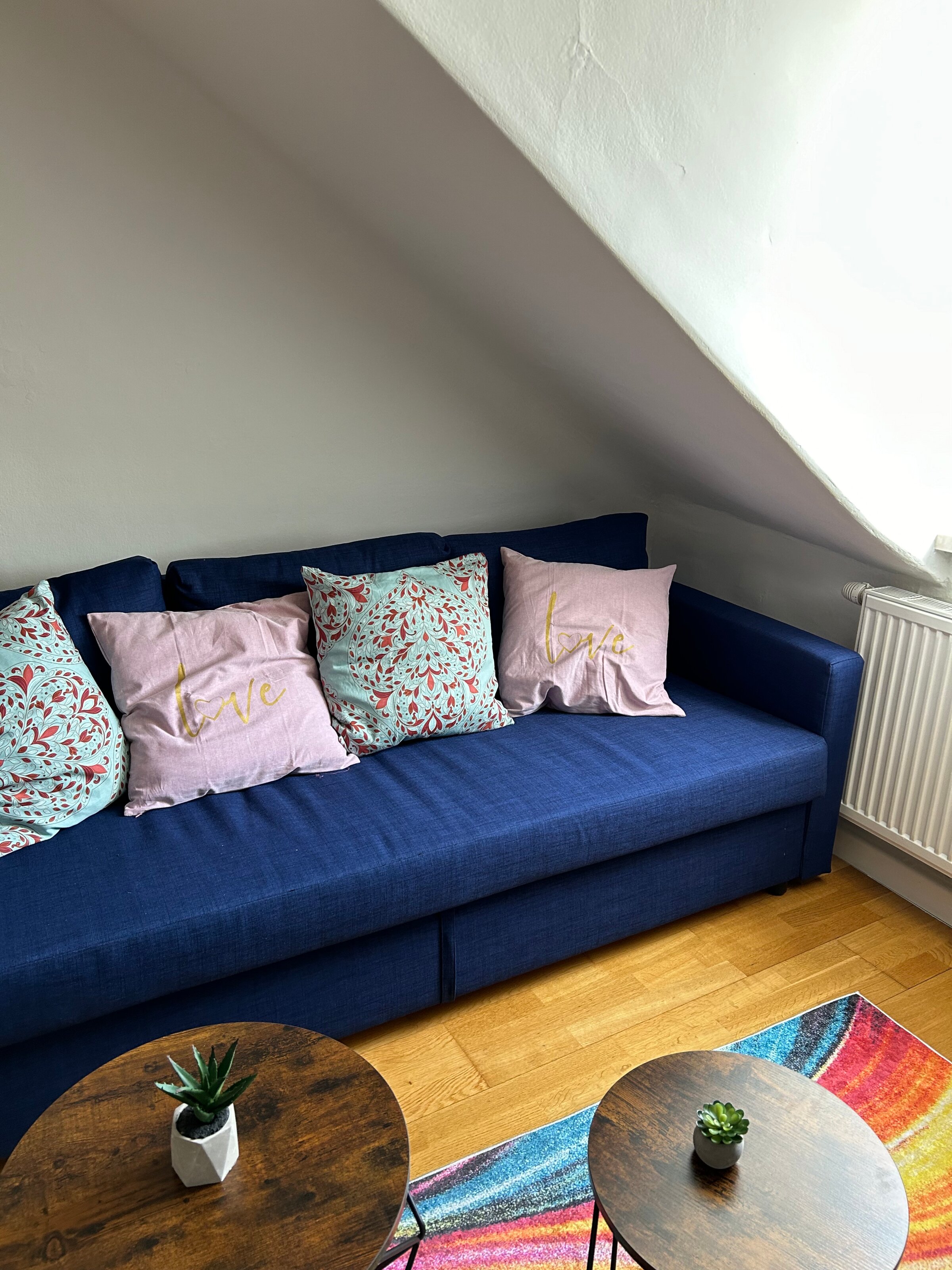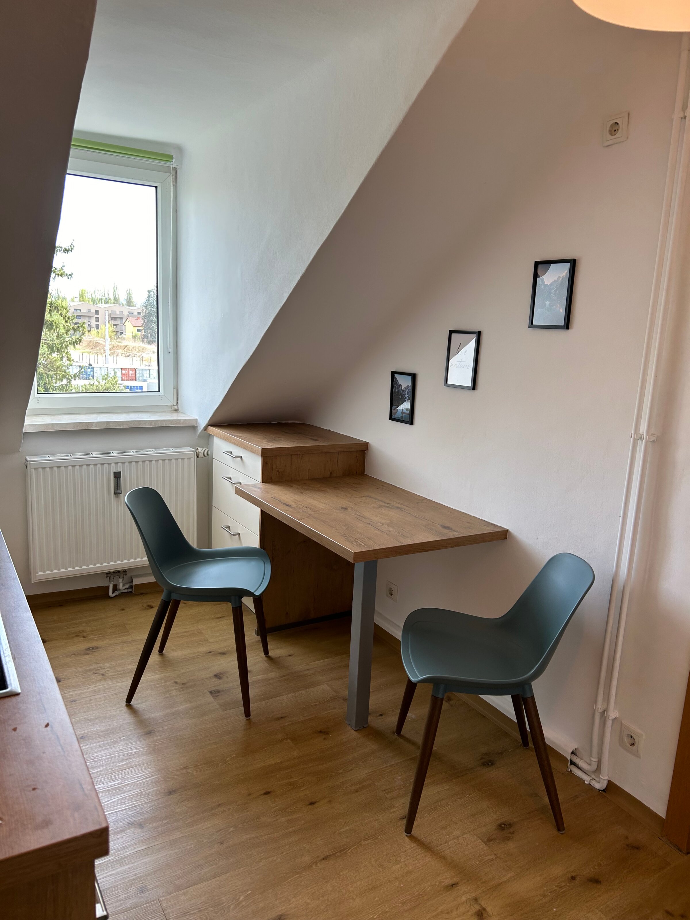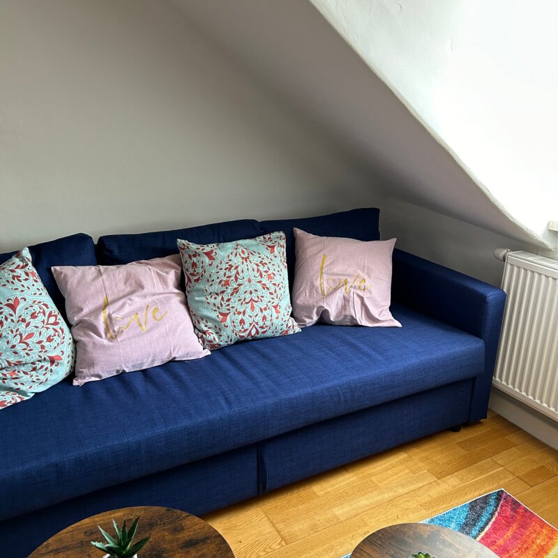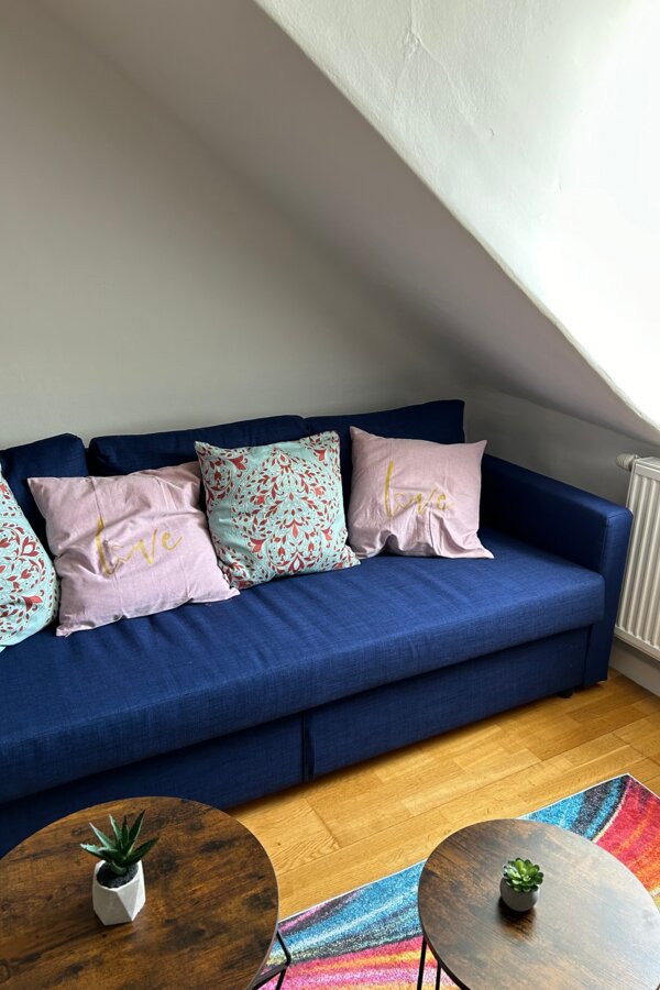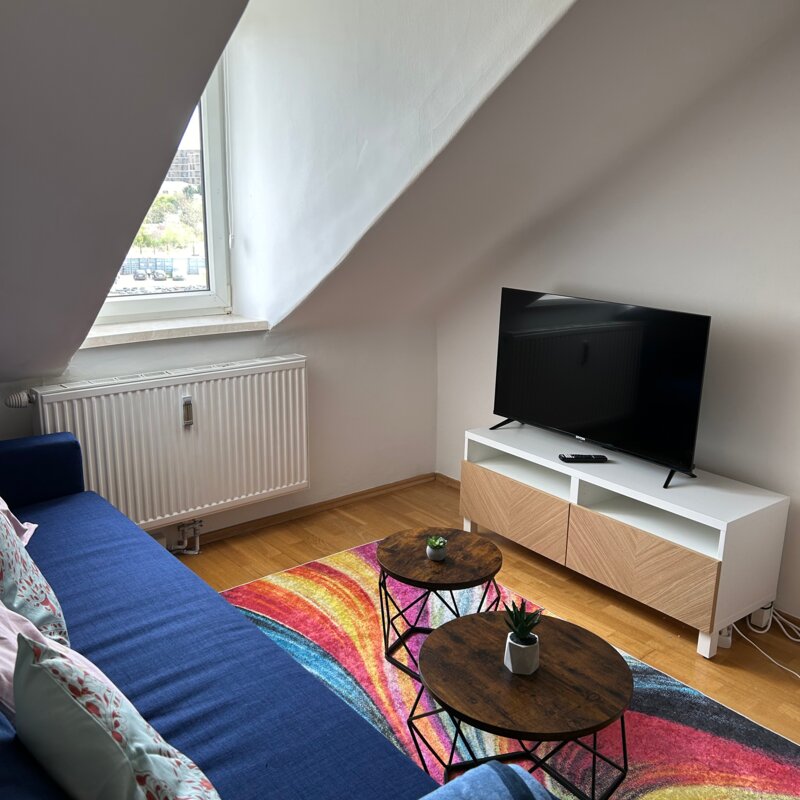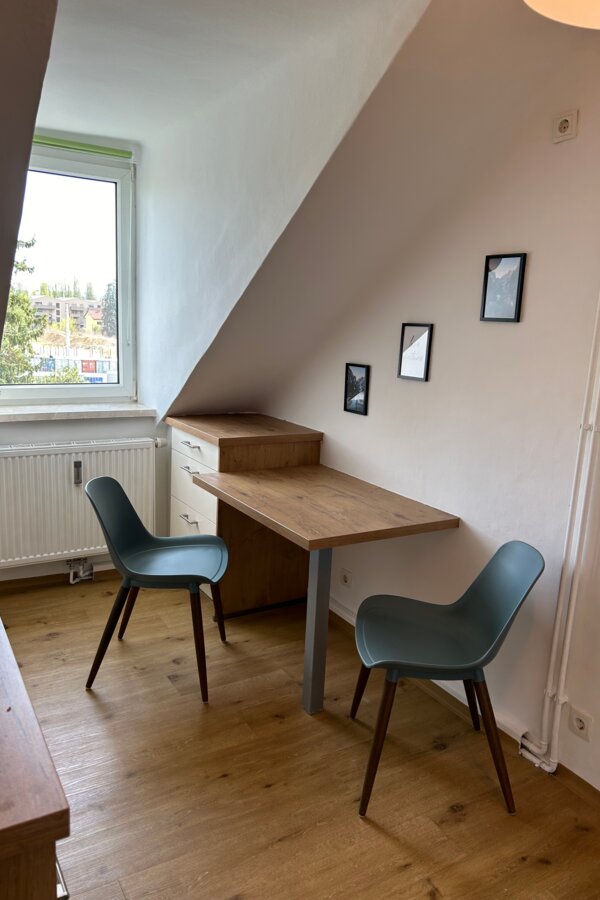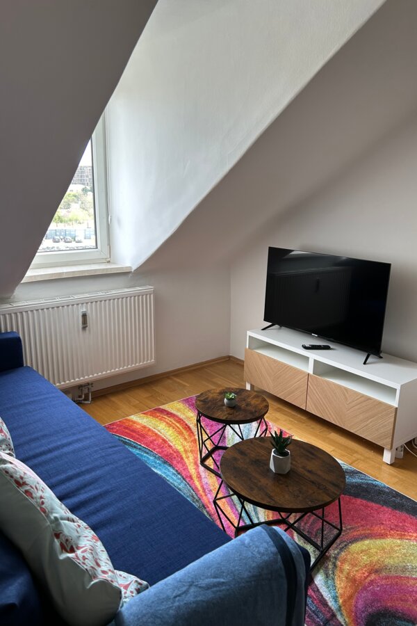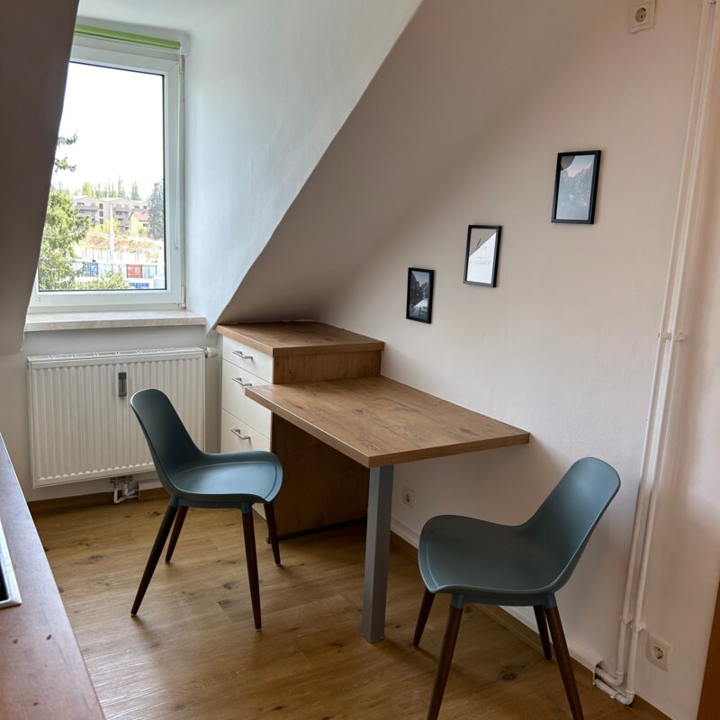 Kleine gemütliche Dachgeschosswohnung, in ruhiger Umgebung jedoch in wenigen Gehminuten bei der Straßenbahn oder Bushaltestelle