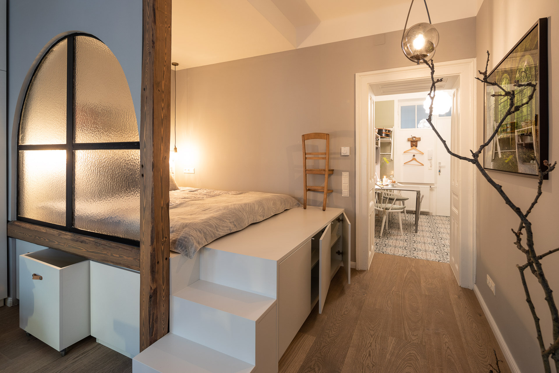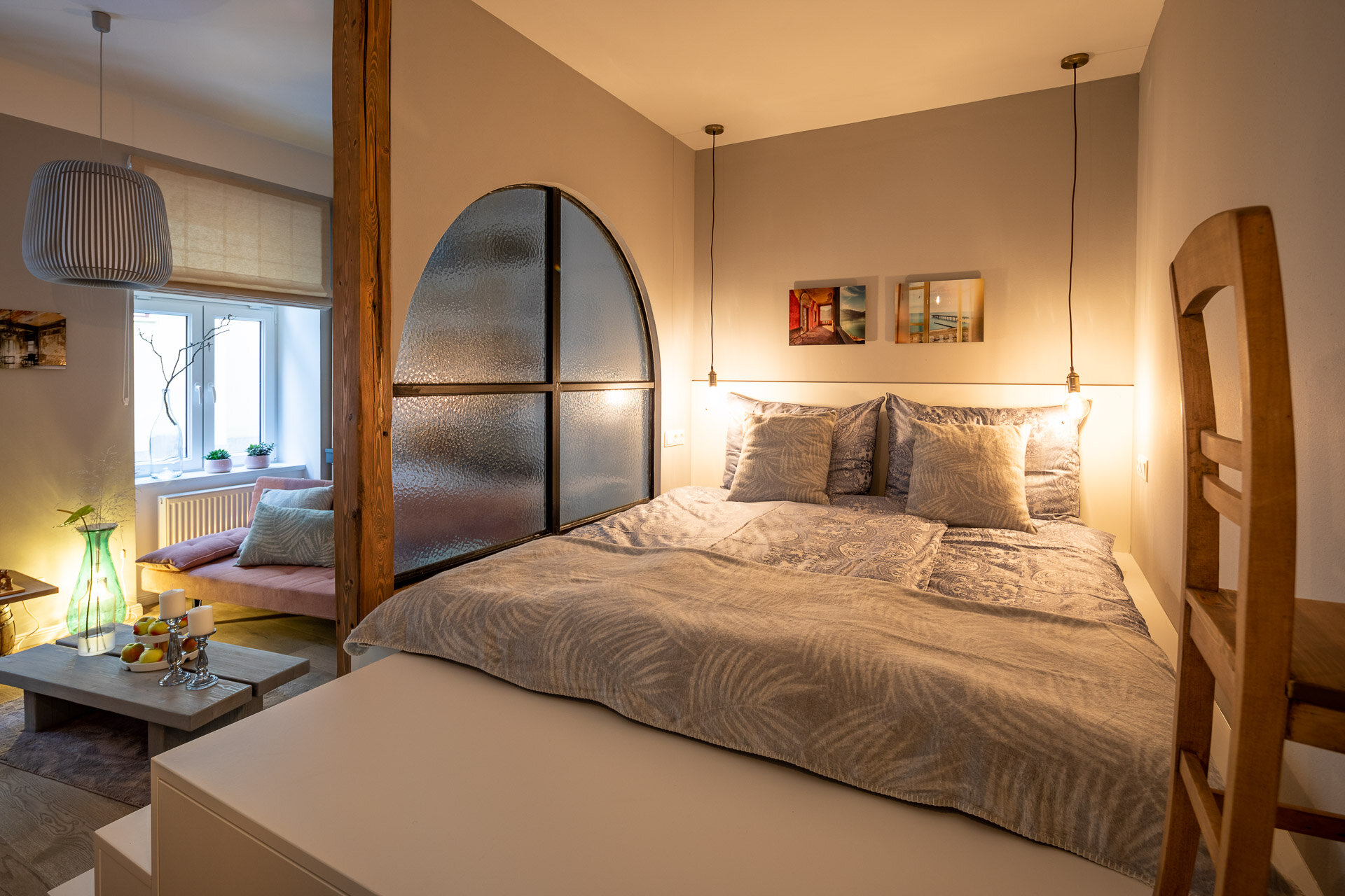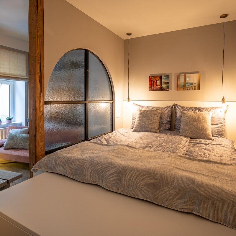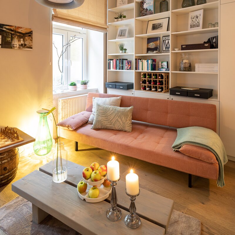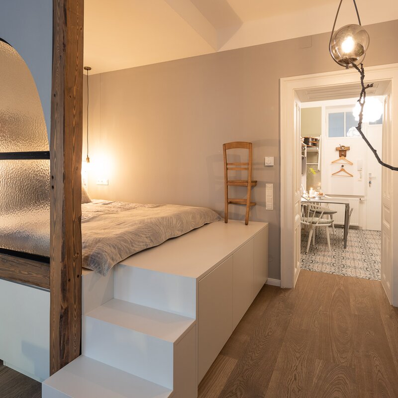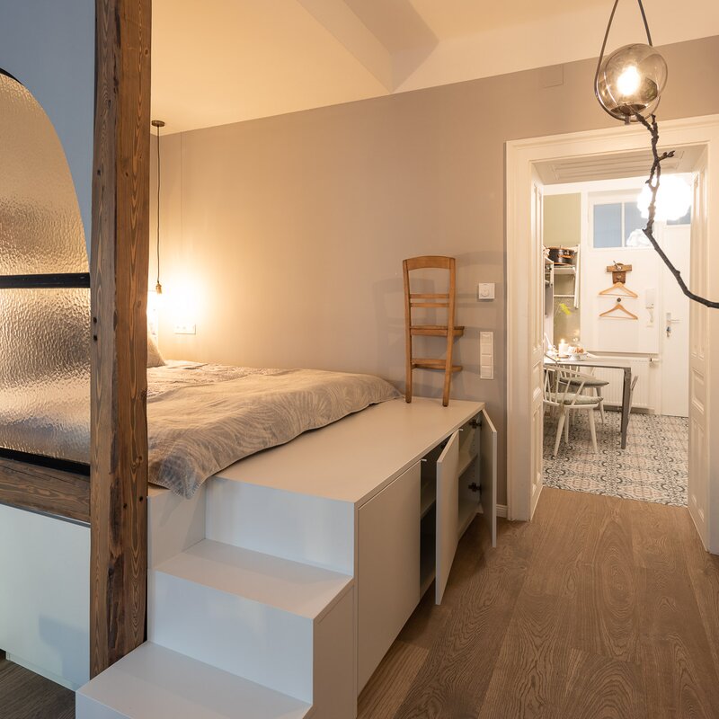 Kuscheliges und ruhiges 38 qm Studio. Design Apartment mit toller Raumaufteilung und extravaganter Ausstattung. Ruhig im Hof gelegen und Parkplatz inkludiert. Küche, Badezimmer und Wohn-Schlafzimmer.
