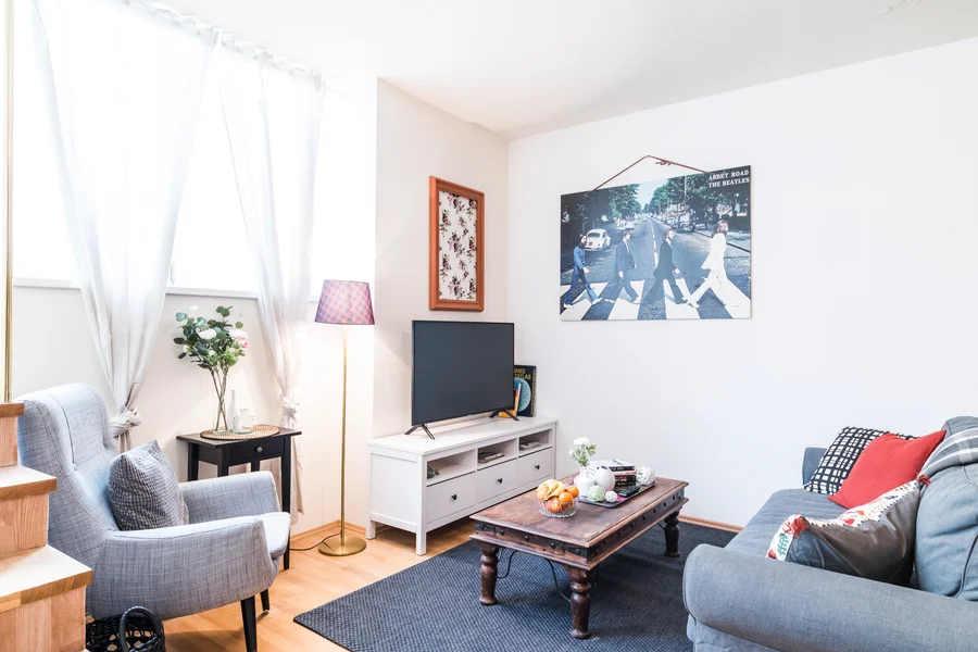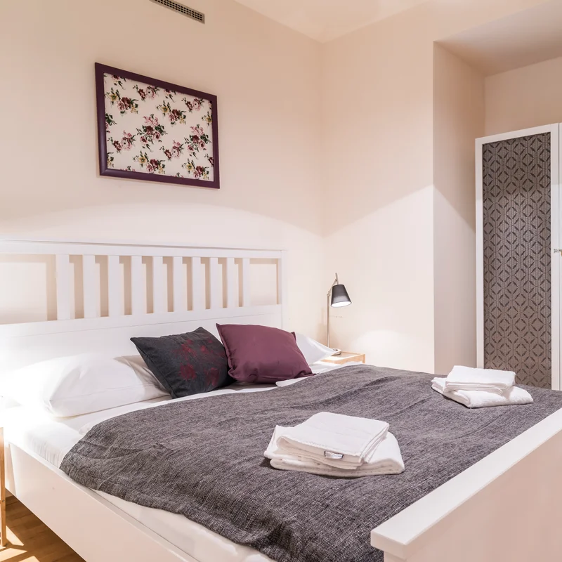 Die Wohnung bietet gemütlich Schlafmöglichkeiten für 6 Personen. Sie beinhaltet zwei Schlafzimmer und zwei Einzel-Schlafsofas im Wohnzimmer. Sie werden ein komplett ausgestattetes Badezimmer, mit einer großen Dusche und einer Toilette, anfinden.