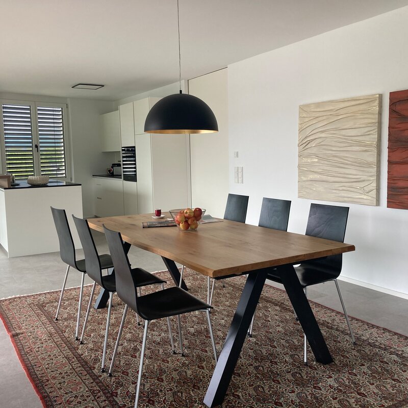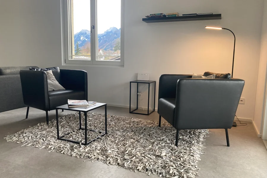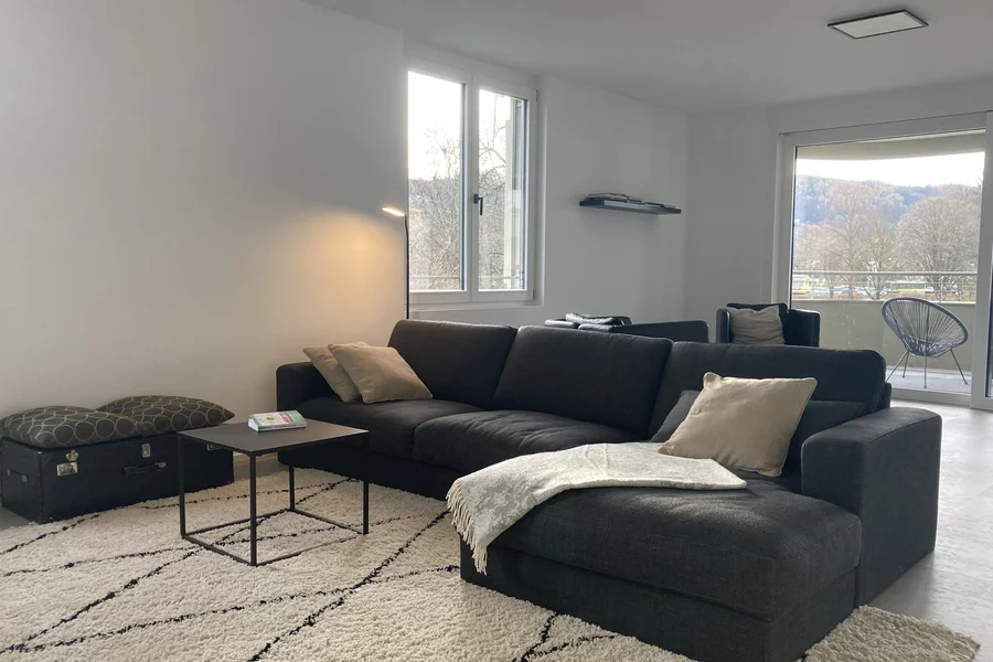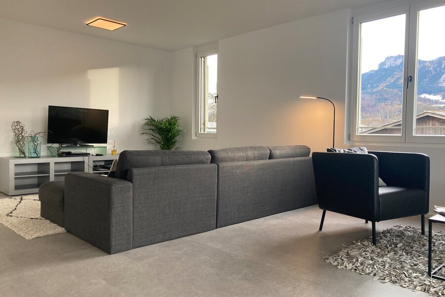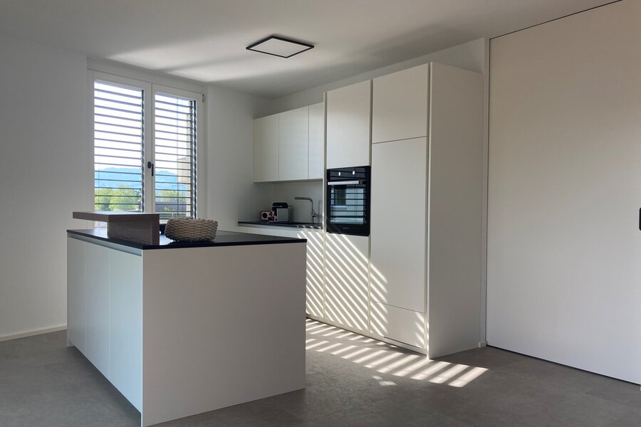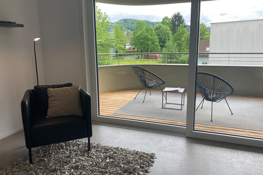 Stilvolles Loft-Wohnen, voll ausgestattete Küche, Sonnenterrasse, gemütliche Möblierung und Tiefgarage.