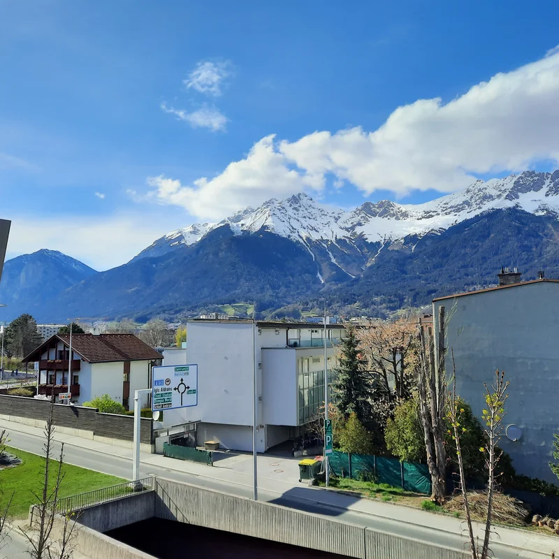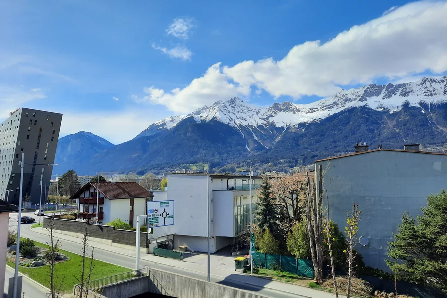 Hochwertige helle 2-Zimmer Wohnung mit grossem Balkon und Tiefgaragenstellplatz in Innsbruck. Schoene Ausblicke auf die Bergwelt und verkehrstechnisch gut angebunden (Autobahnabfahrt Mitte, Busse in Richtung Zentrum, Nordkette und Patscherkofel).