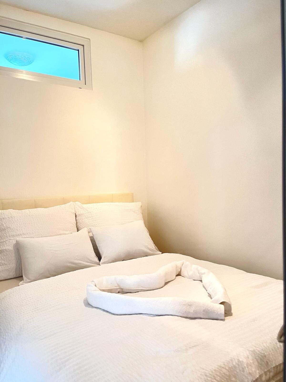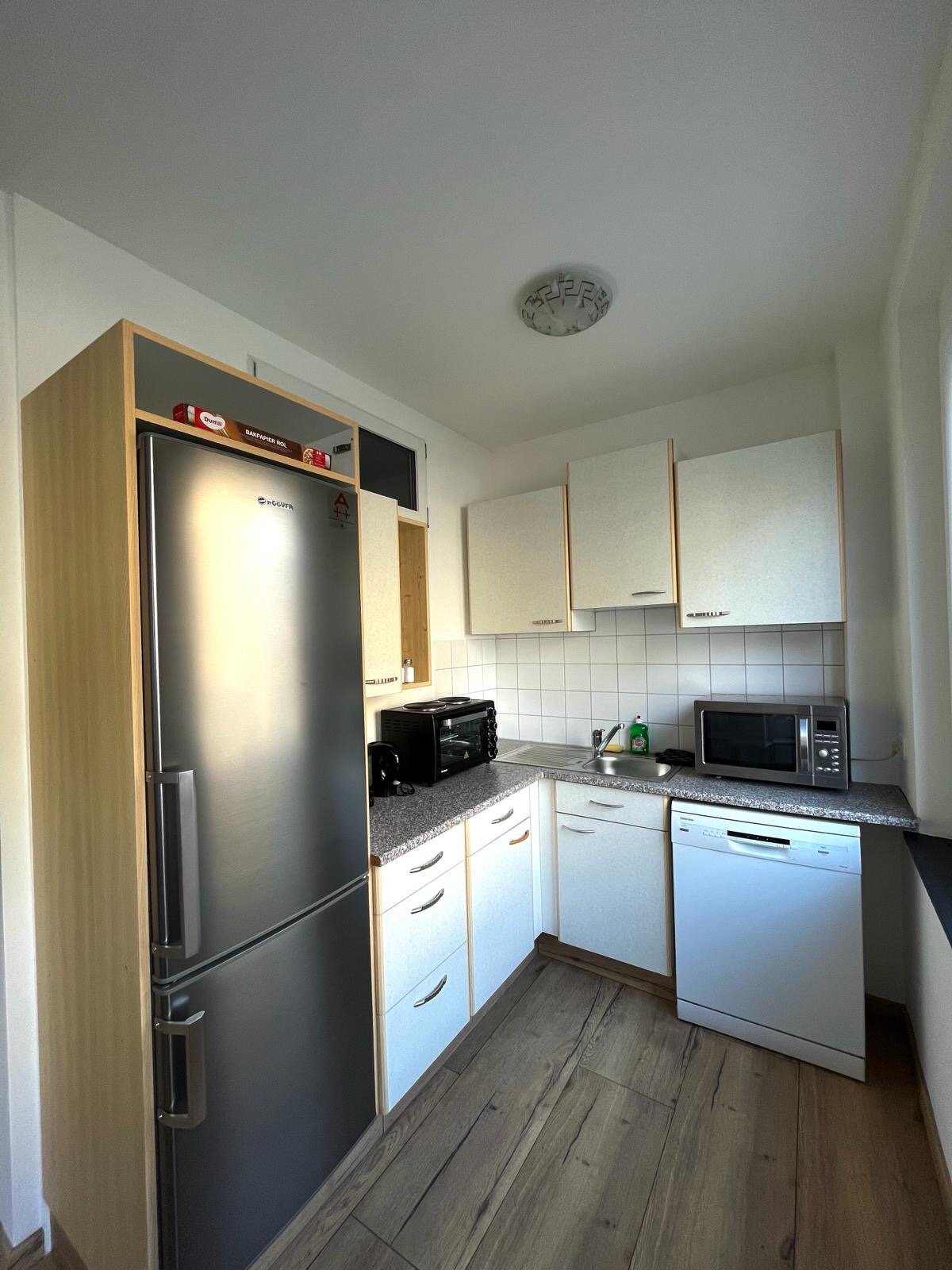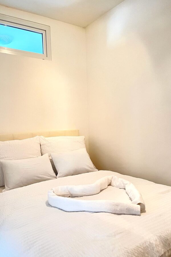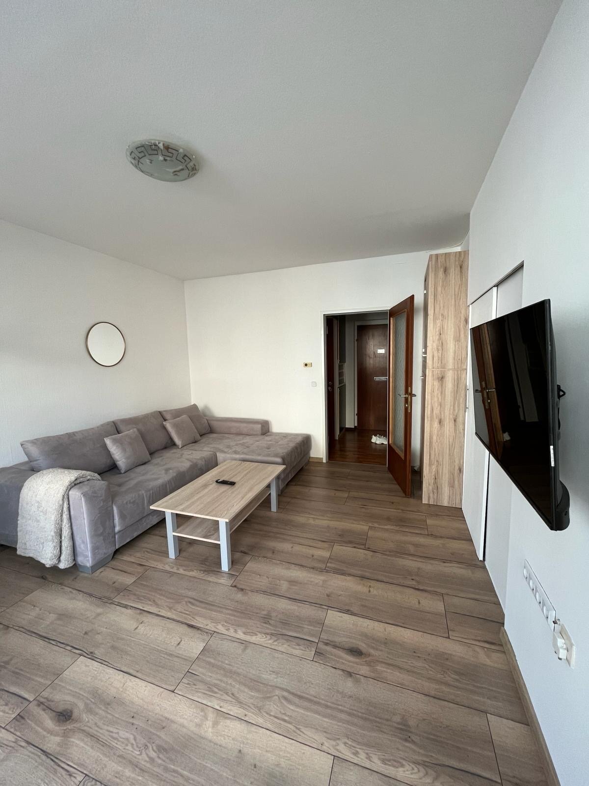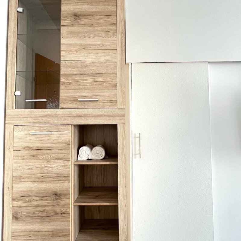 Eine neu Renovierte helle Wohnung, Vollausstattung, 1 Schlafzimmer, Wohnzimmer und Küche gemeinsam, Jalousien, Küchenutensilien, Handtücher, Shampoo, Seife, Föhn, Klopapier etc. Badezimmer voll ausgestattet.