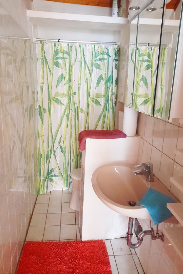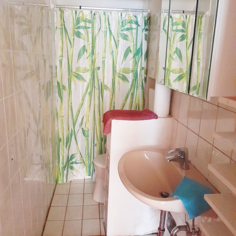 Schönes helles Appartement mit geräumigem Wohn- Schlafraum in dem sich ein Doppelbett befindet. Sowie ein heller Arbeitsplatz.
