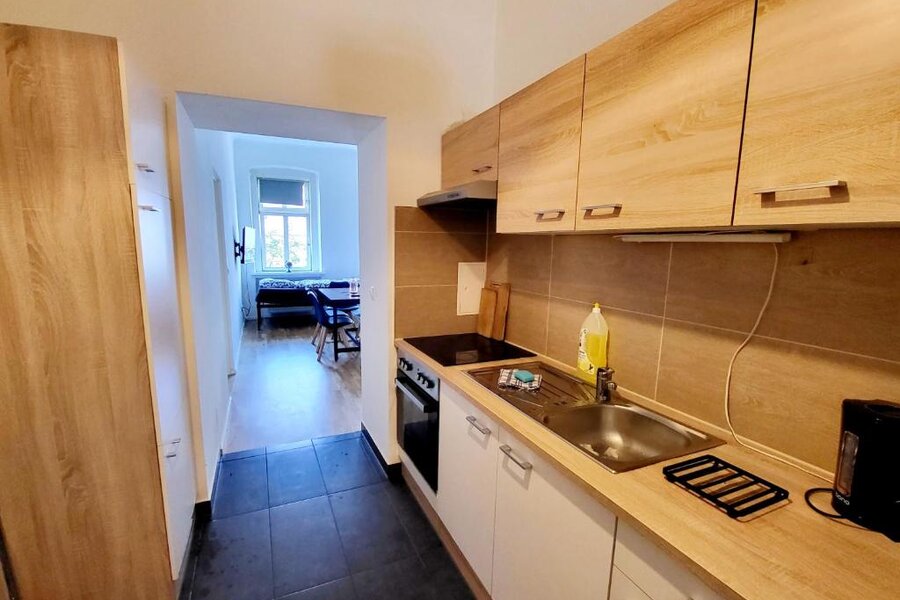Das Apartment verfügt über 2 Schlafzimmer, einen Flachbild-TV, eine voll ausgestattete Küche mit einem Backofen und einem Kühlschrank, eine Waschmaschine und 1 Badezimmer mit einer Badewanne oder einer Dusche. Rauchen ist verboten.