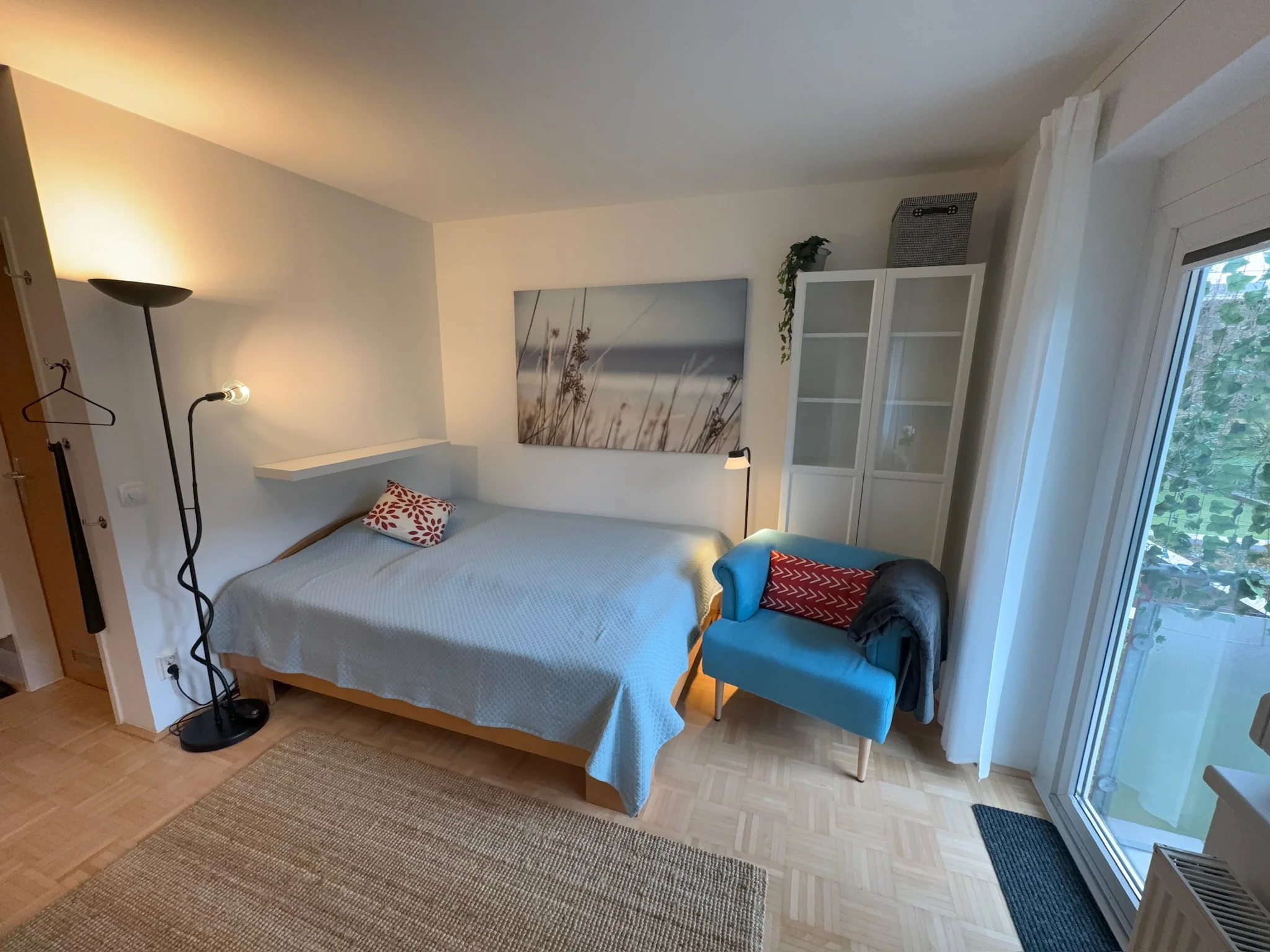 Wohnen und Schlafen: 1 x Doppelbett (1,60 m x 2 m)