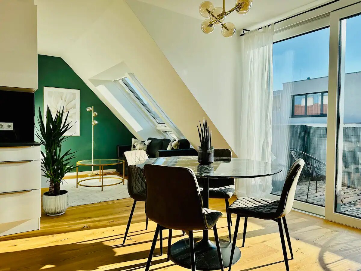 Wunderschöne, sehr ruhige und lichtdurchflutete Dachgeschoss Wohnung mit sehr großer Terrasse unweit der Ubahn Station U4 Margaretengürtel und Ubahn Station U4/U6 Längenfeldgasse (5 Gehminuten).