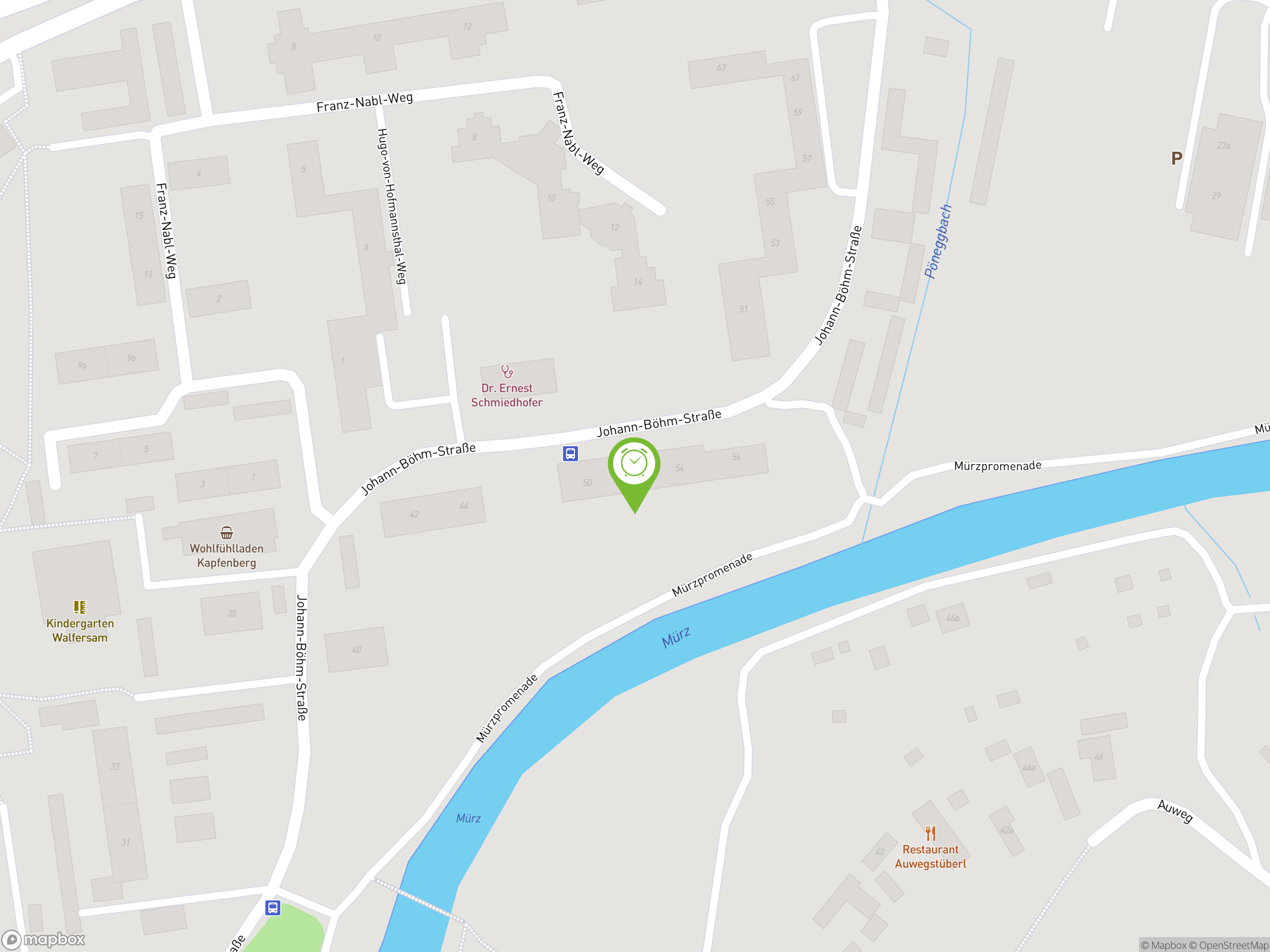Direkt vor dem Haus hält stündlich ein Mini bus. Der sie zum Joaneum Kapfenberg, zum Bahnhof und ins Zentrum bringt. Dort befindet sich ein Einkaufszentrum "ECE" und der Busbahnhof. In Gehweite fährt auch ein Stadtbus. Radweg vor dem Haus. In ca. 150m Entfernung befindet sich ein kleiner Supermarkt mit Café.