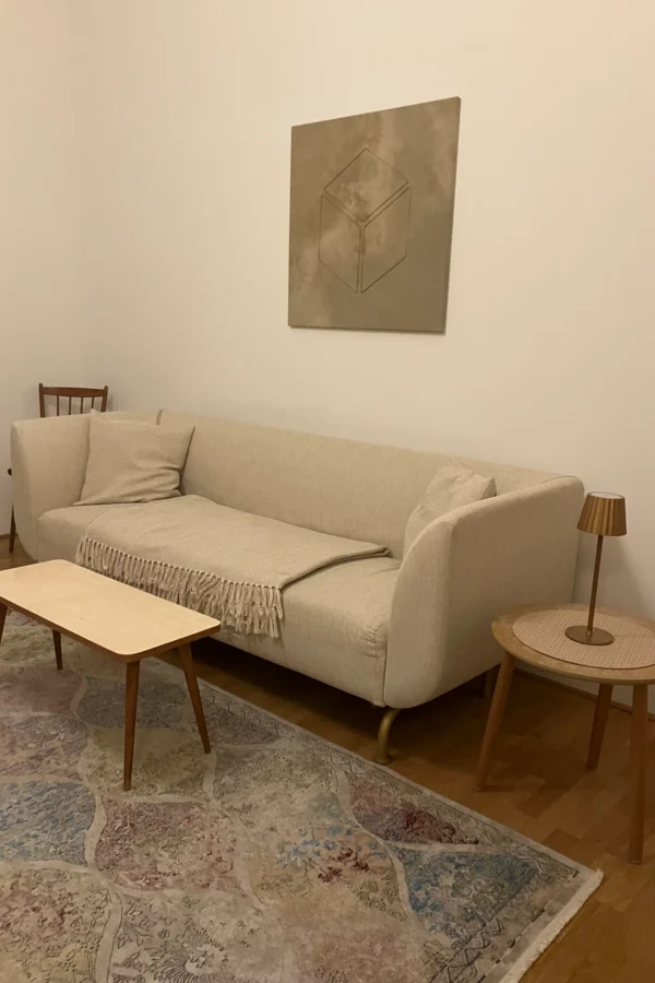 Unsere Wohnung liegt an einem ruhigen Ort und ist zudem sehr zentral und öffentlich gut erreichbar. Der Balkon ist groß und bietet eine schöne Aussicht in den begrünten Park. Zudem gibt es viele nette Restaurants, Cafés und Bars in direkter Umgebung.