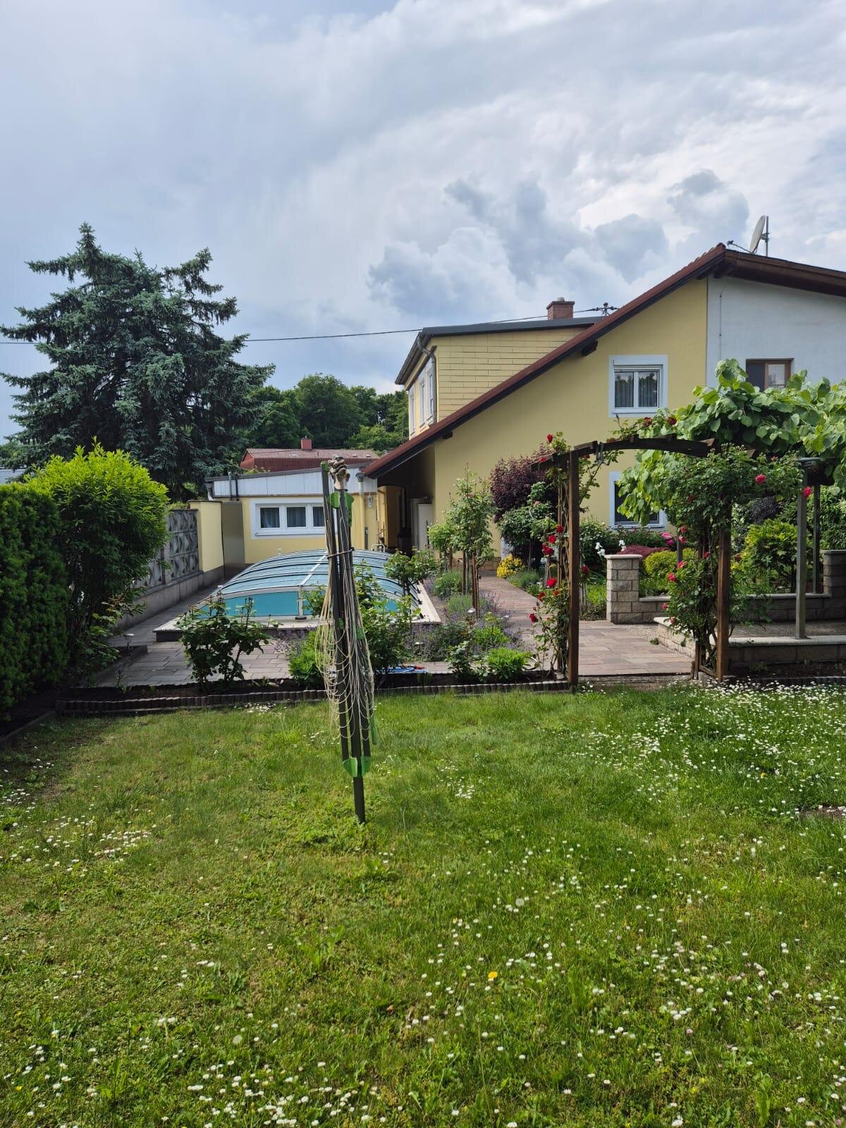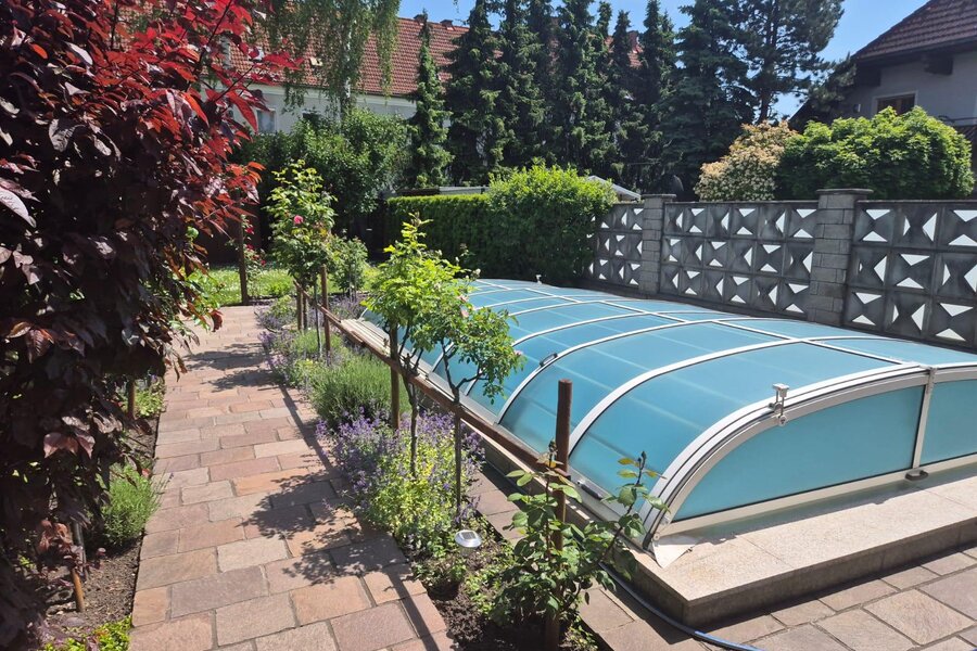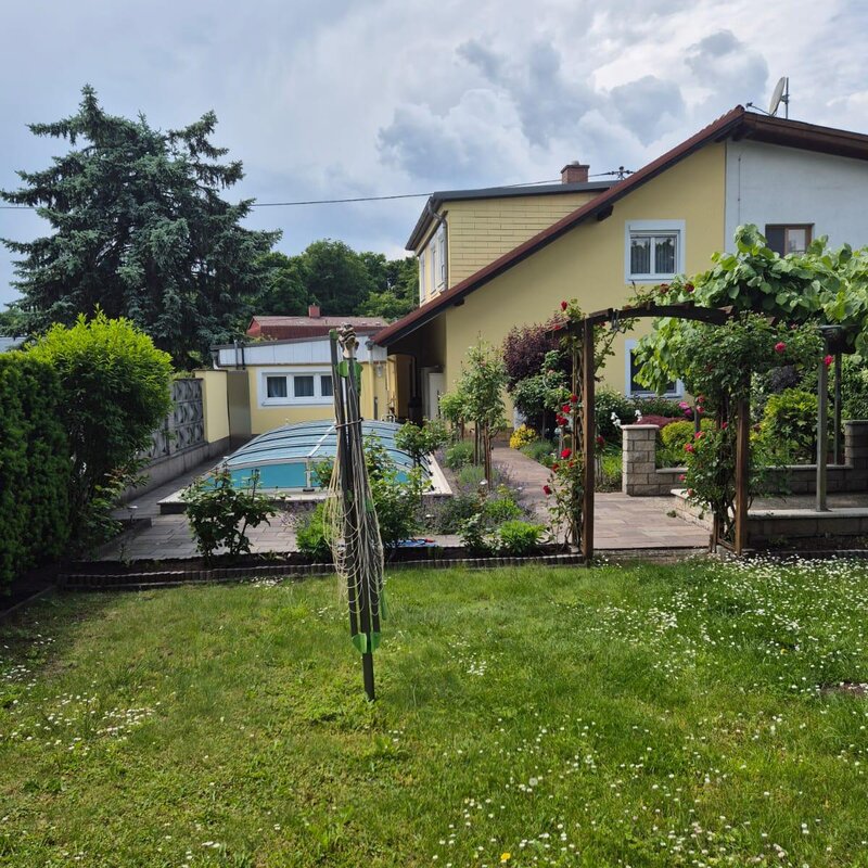 Diese charmante Doppelhaushälfte verbindet Stadtnähe mit ländlichem Flair. Die ruhige Siedlungslage mit wunderschönem Garten und Pool bietet Erholung nach arbeitsintensiven Tagen.