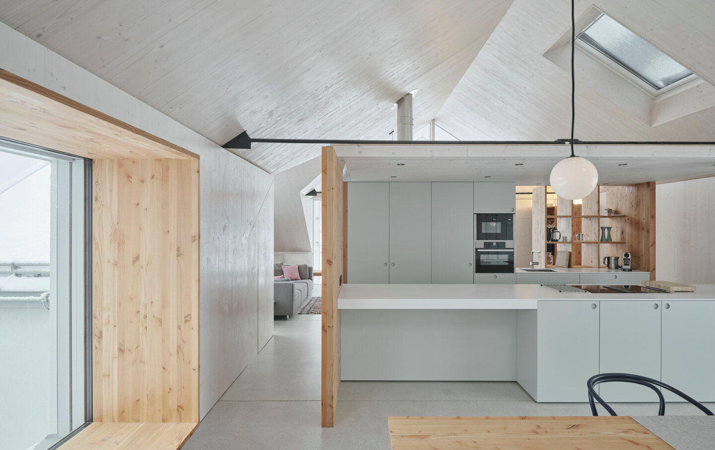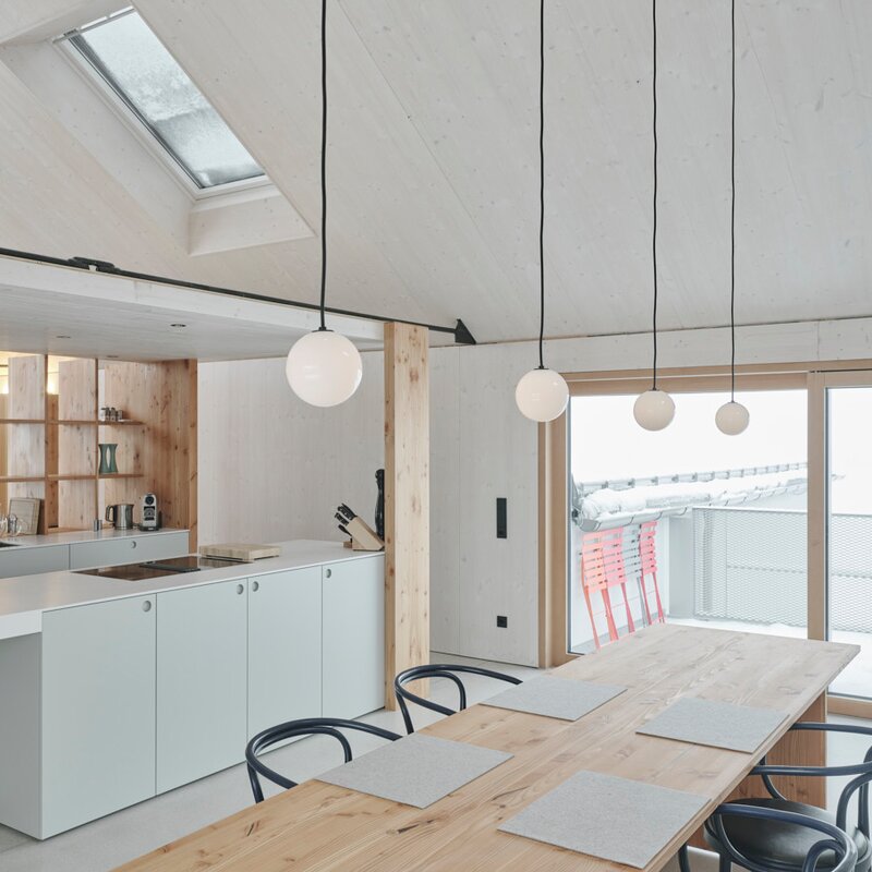 Vom preisgekrönten Tiroler Architektenduo, modernes minimalistisches Design. Das Penthouse bietet 135qm auf einer Ebene, 2 Schlafzimmer, 2 Badezimmer, eine XL Open-Space Küche welche den großzügigen Ess- und Arbeitsbereich vom Wohnbereich trennt.