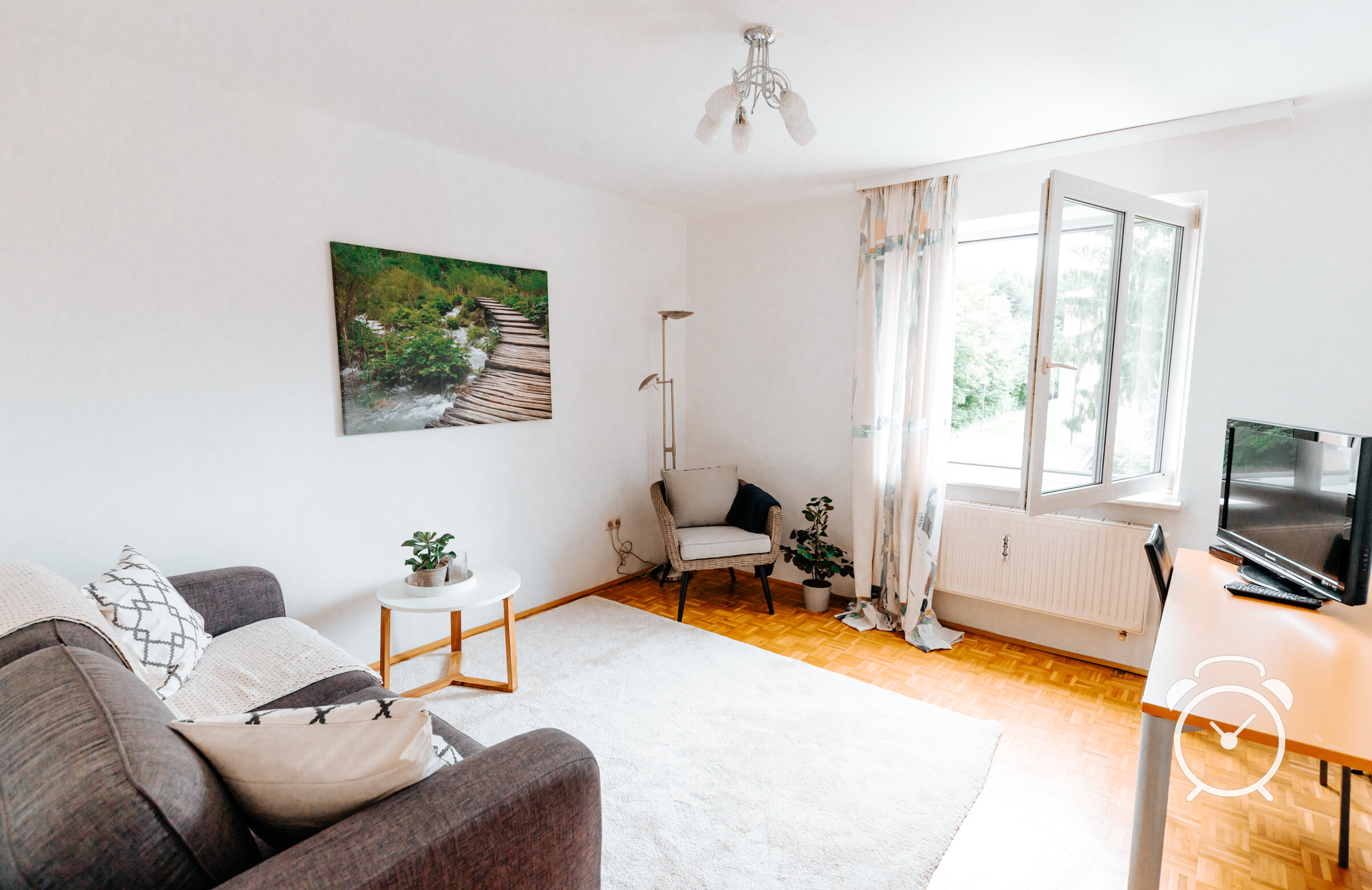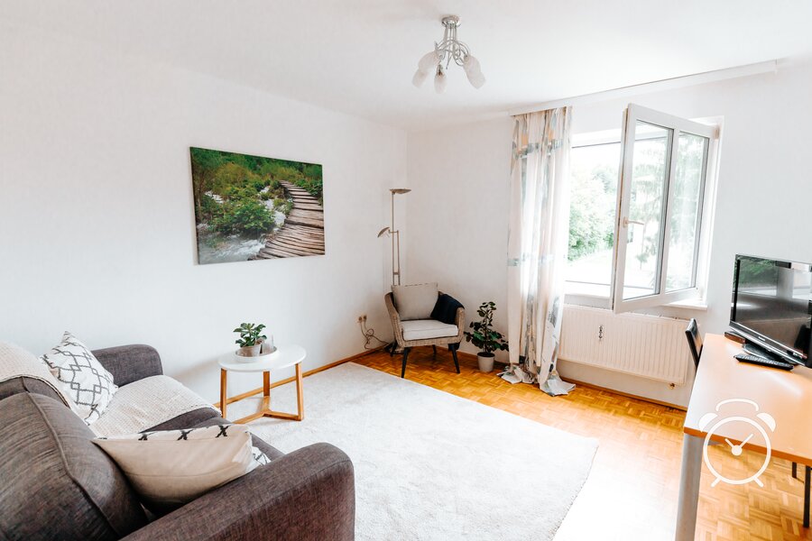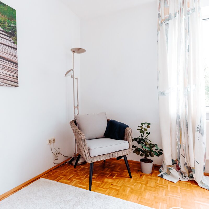 Gepflegte Wohnung in ruhiger Lage. Blick in die Gartenanlage. Privathaus mit 4 Parteien. Die gesamte Einrichtung ist neuwertig, Ein Schreibtisch und heller Arbeitsplatz sind vorhanden.