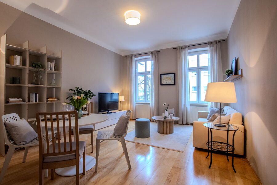 Die gemütliche 2-Zimmer-Wohnung im 1. Stock eines alten Zinshauses in Ottakring besticht durch ein modernes Design und eine ideale Lage.