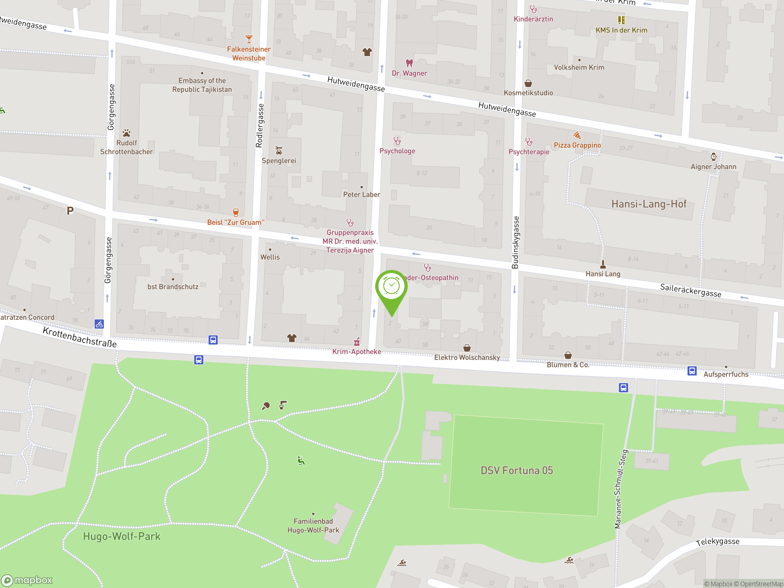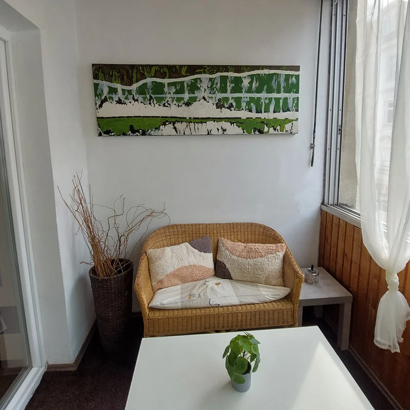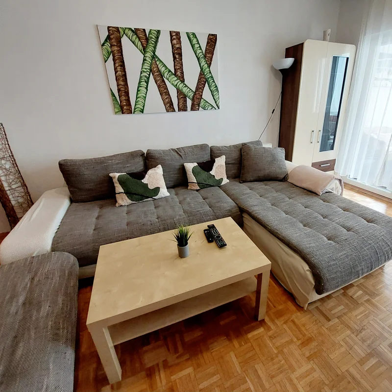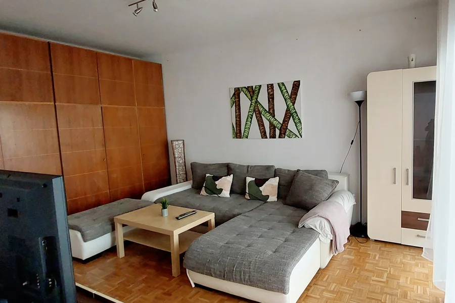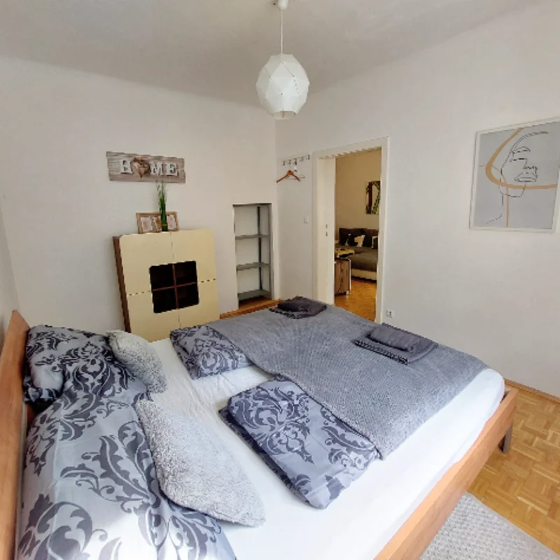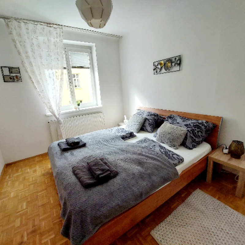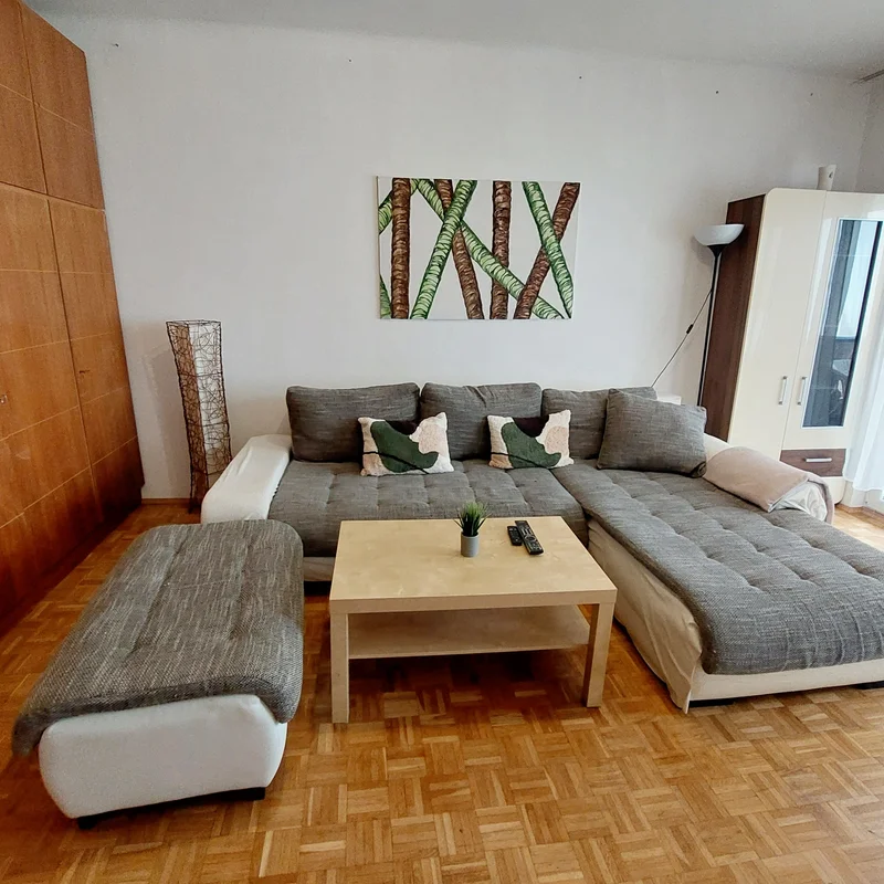 Die zentrale aber dennoch grüne Umgebung der Wohnung (Hugo Wolf Park- Kinderspielplatz), öffentliche Verkehrsmittel: 35 A und S45 in Gehweite.