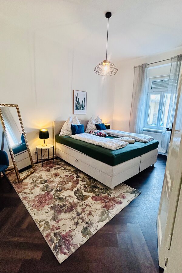 Die stilvolle und geräumige 80m² Wohnung bei der Stadthalle mit Balkon ist ideal für Städte-, Geschäfts- u. Erholungsreisen. Hoher Komfort, Arbeitsplatz, viel Raum sowie ein Parkplatz sorgen für einen angenehmen Aufenthalt mit nahegelegenen Lokalen.
