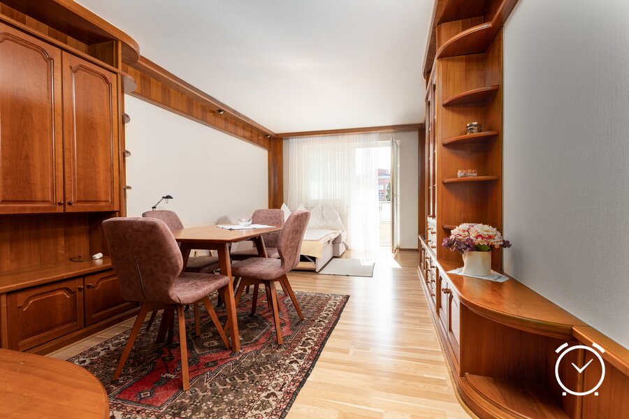The apartment is located in a well-developed residential area that offers excellent infrastructure for daily needs. The surroundings are characterized by a mix of urban proximity and quiet living.