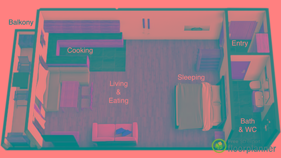 Living & Sleeping: 1 x Double bed (1,80 m x 2 m), 1 x Sofa bed (1 person)