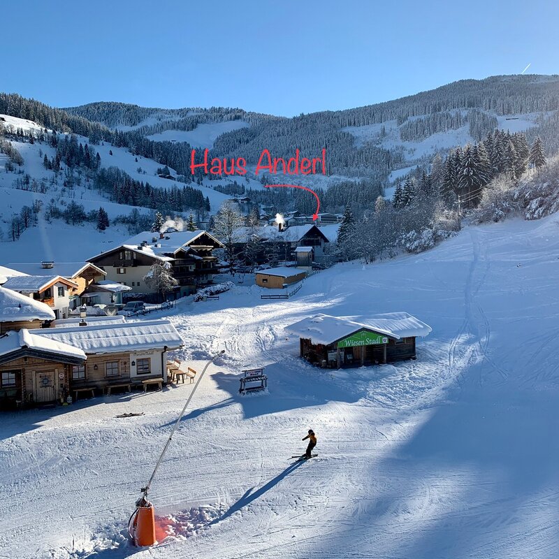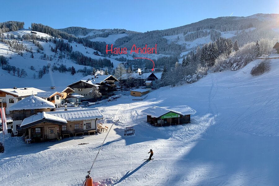 The nearest bus stop is directly at the Hintermoos ski center. This can be reached on foot in 3-5 minutes.
