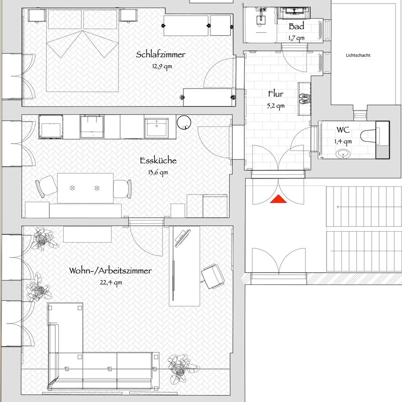 Tastefully decorated historic apartment in a central location. Perfect for visiting professors, artists, or project staff who want a temporary home with style – fully equipped from kitchen blender to washer-dryer.