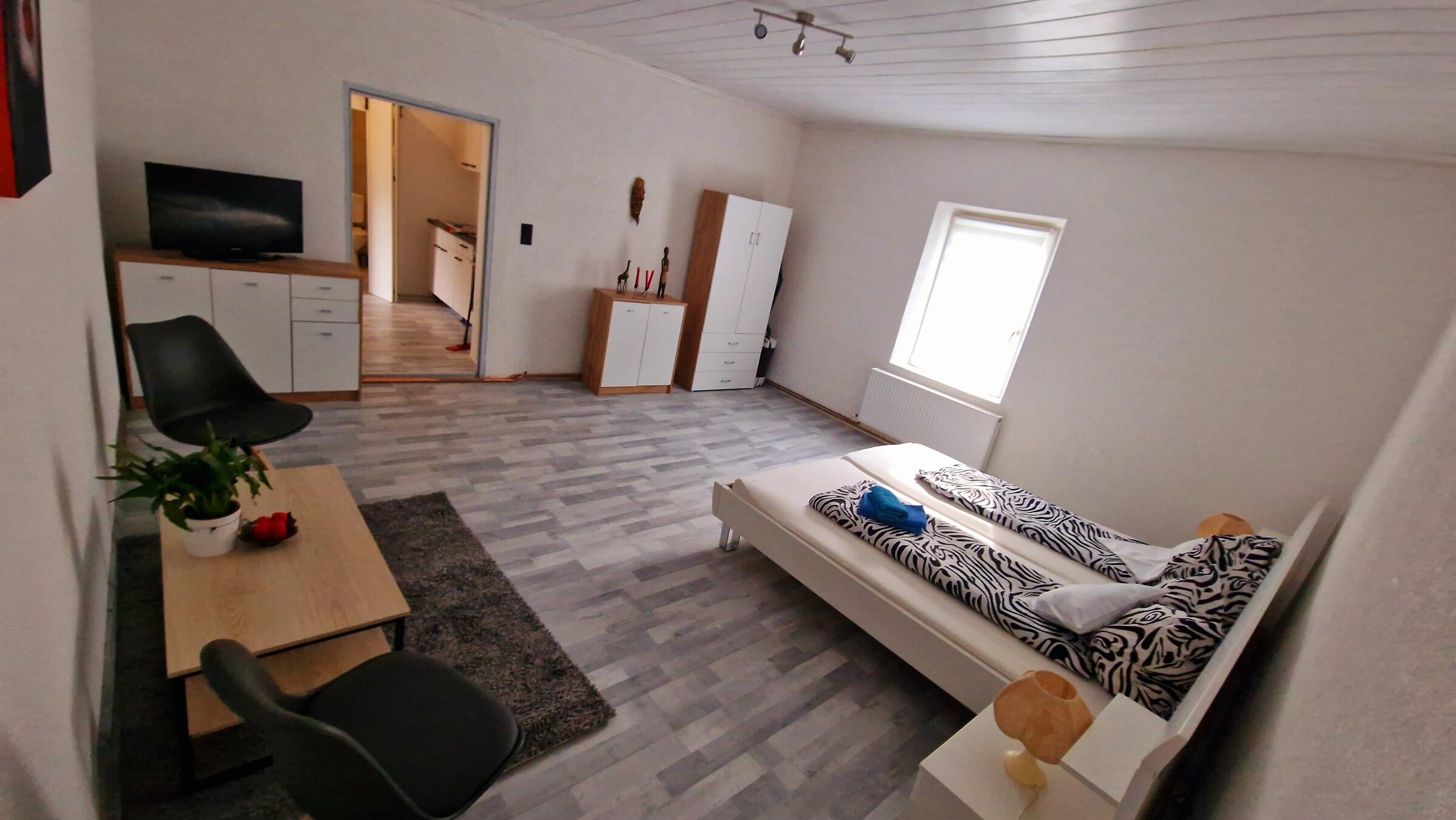 1 Large Bedroom/Living Room with a double bed