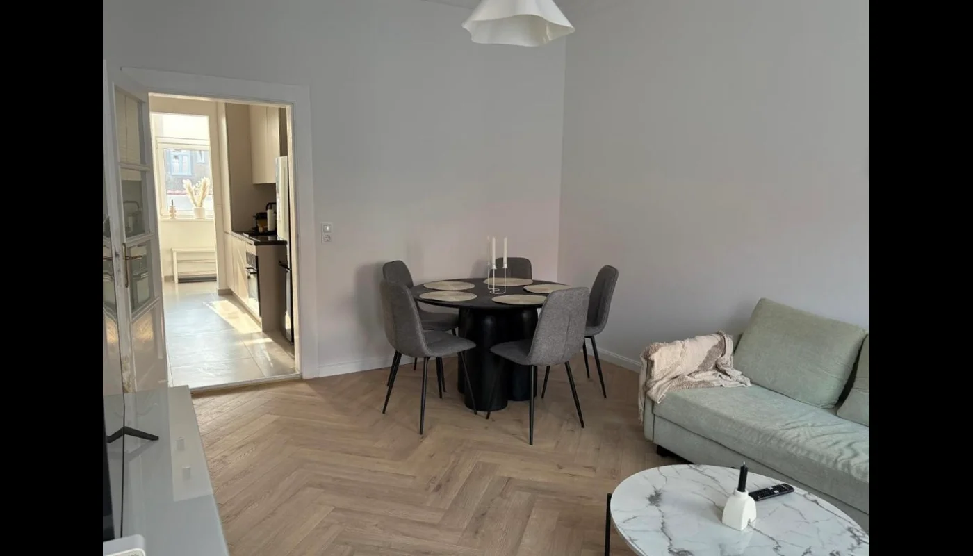 You'll be staying in a newly renovated and tastefully furnished apartment in a quiet side street. The city center is a 20-minute tram ride away, and there are several supermarkets, bars, and restaurants in the surrounding area.