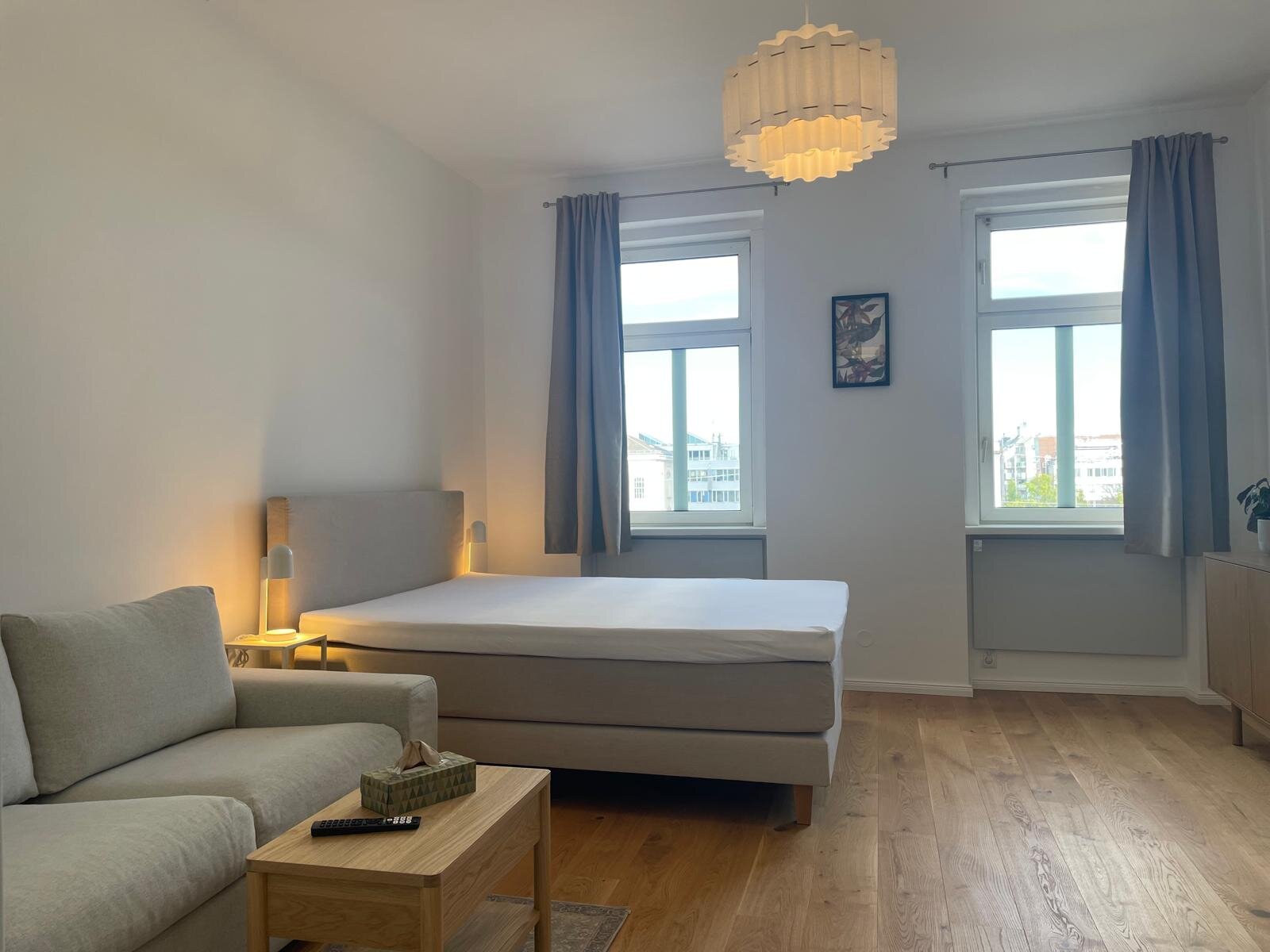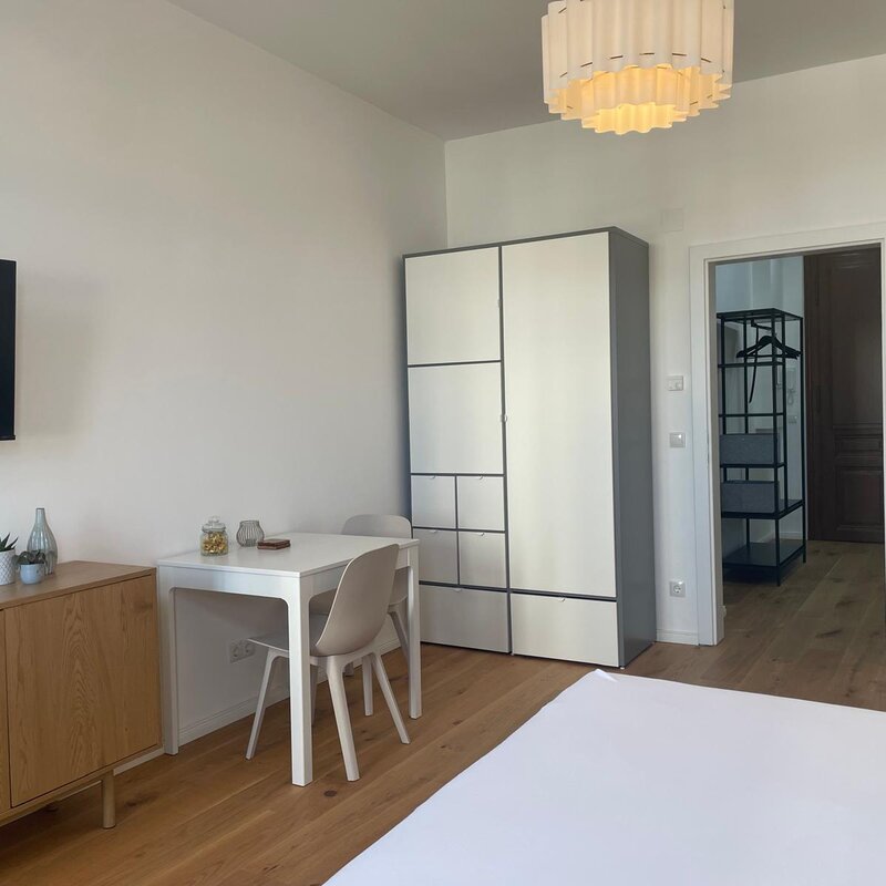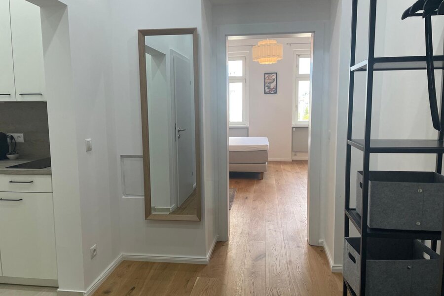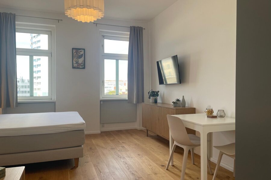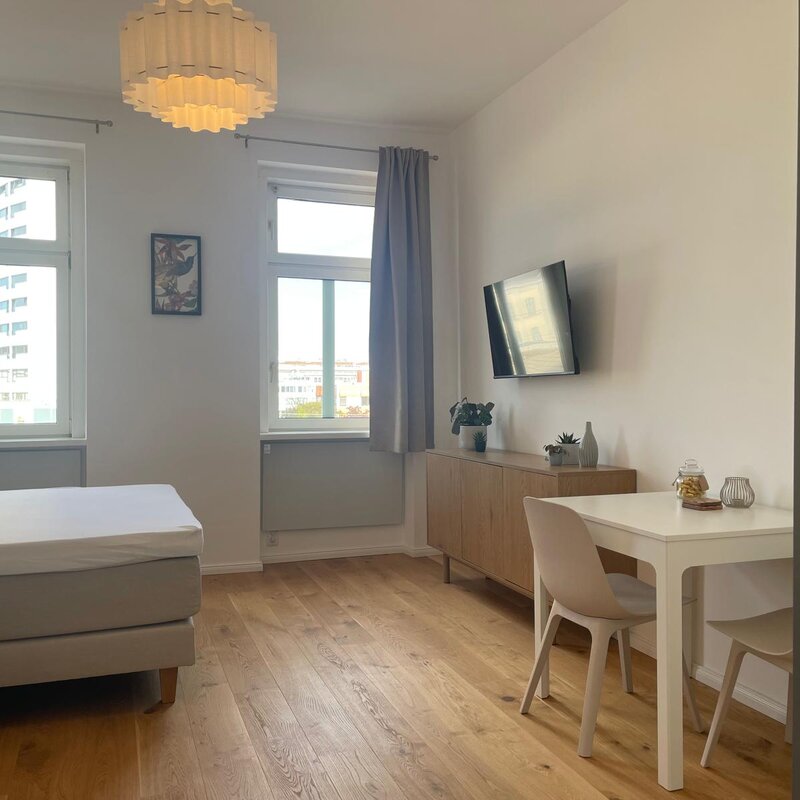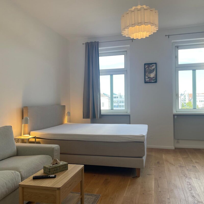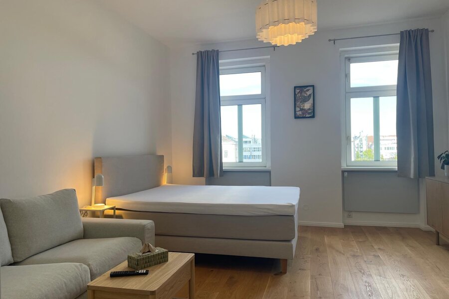 Bright studio apartment on the 3rd floor of a typical Viennese building with everything you need for your home away from home.