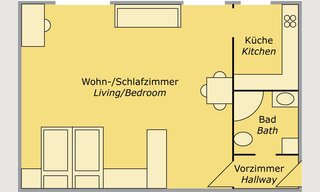 38 m2 studio apartments (410 sq feet), consisting of a combined living and bedroom, fully equipped kitchen, hallway, bathroom with shower & WC. The studios offers a double bed and a high quality sofa bed and provide accommodation for 3 Persons.