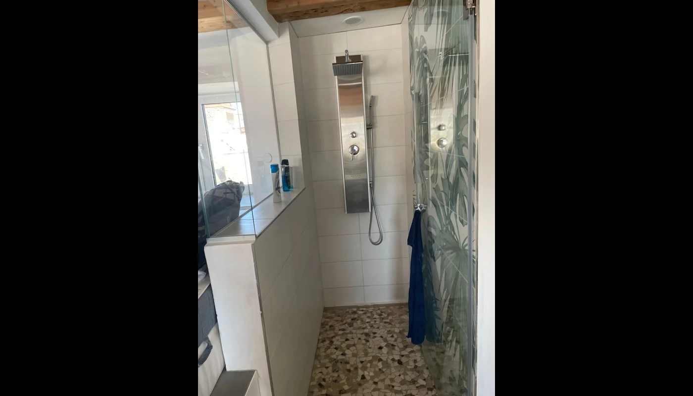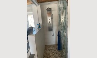 Bright, airy space with wide views, Smart Home features, spacious open jungle-shower, and a fitted kitchen.