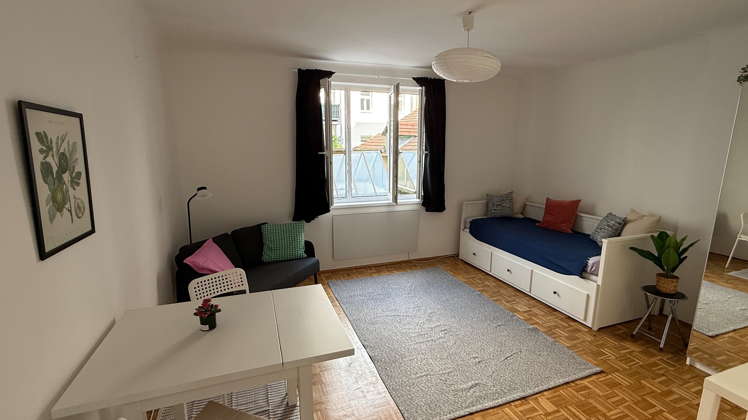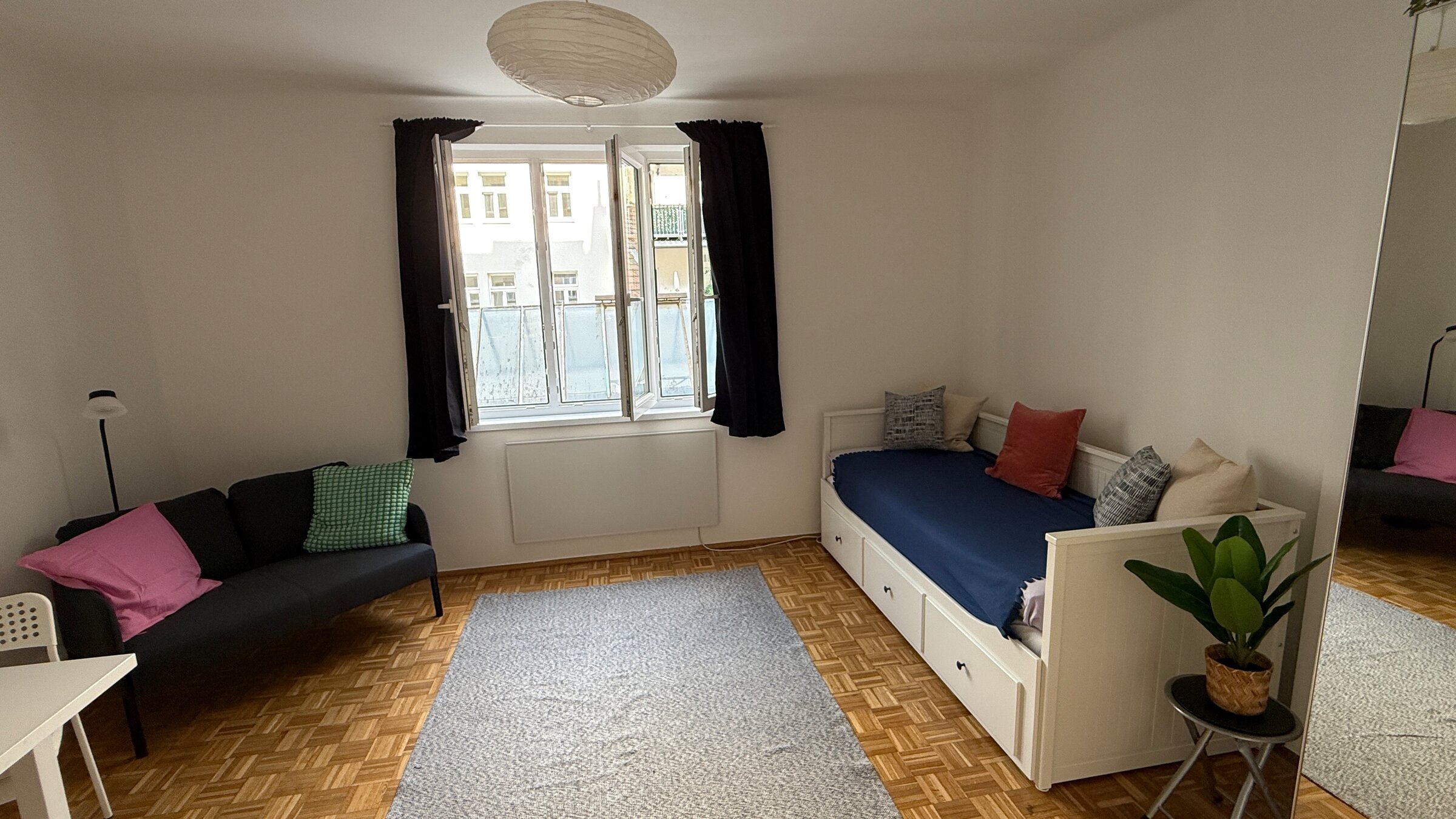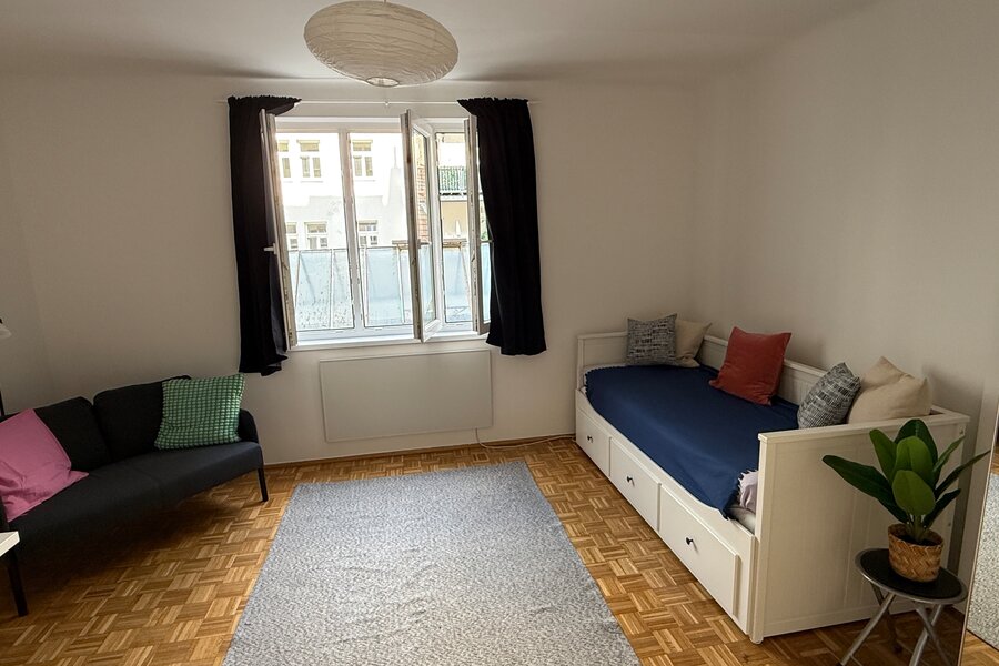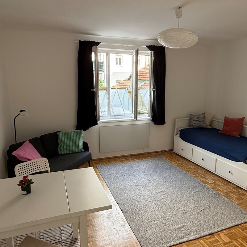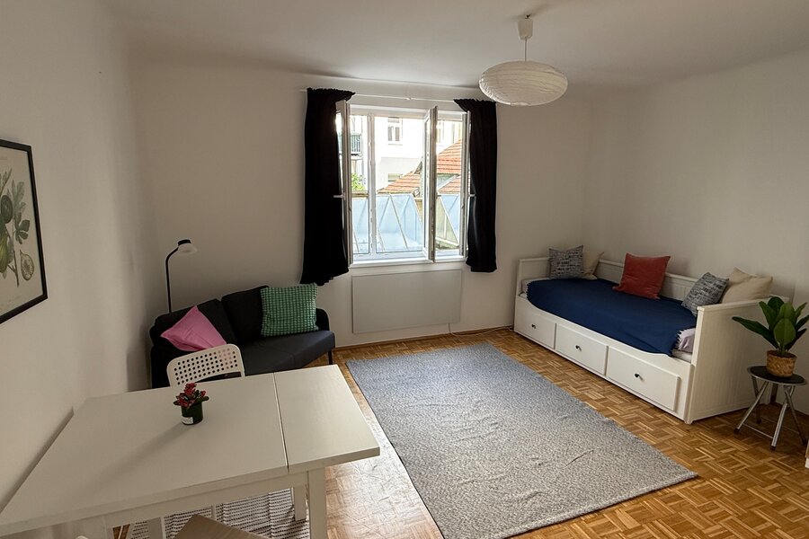 "Close to Schlossquadrat! Prime location in the 5th district. Quietly situated and furnished studio apartment with a large basement storage room."