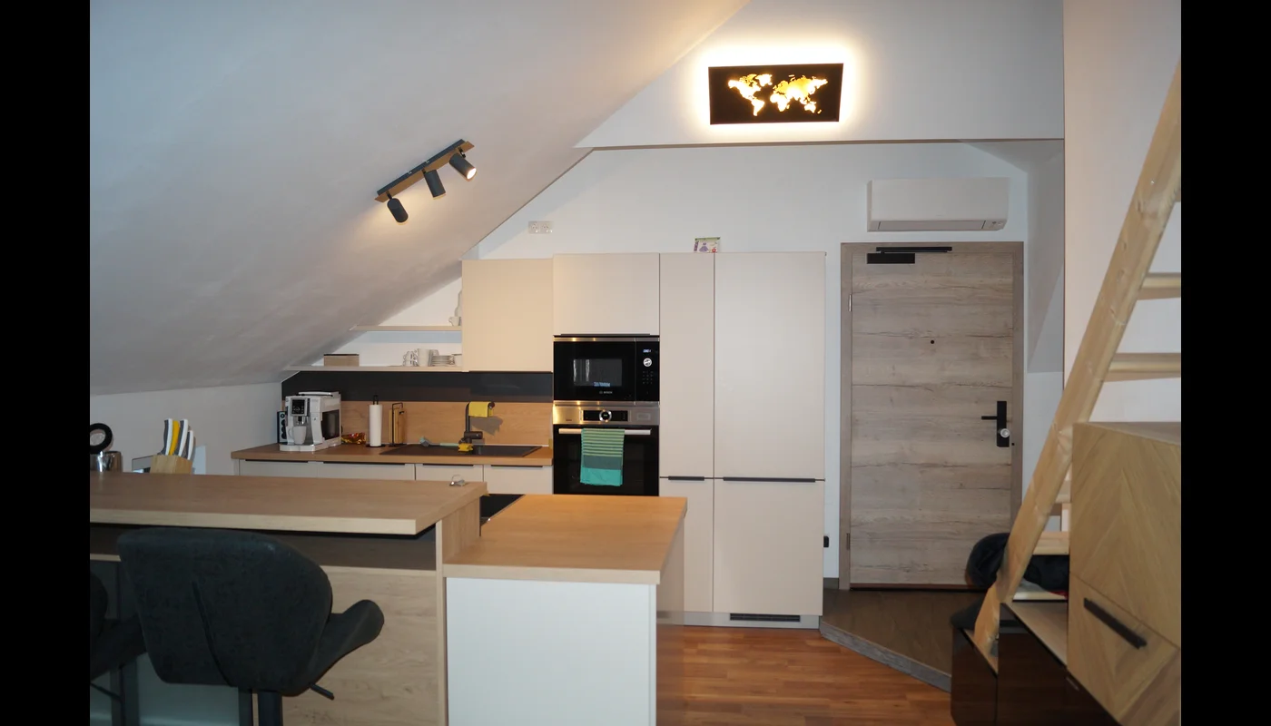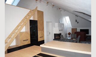 This newly designed apartment offers a distinctive atmosphere with its remarkable architecture.